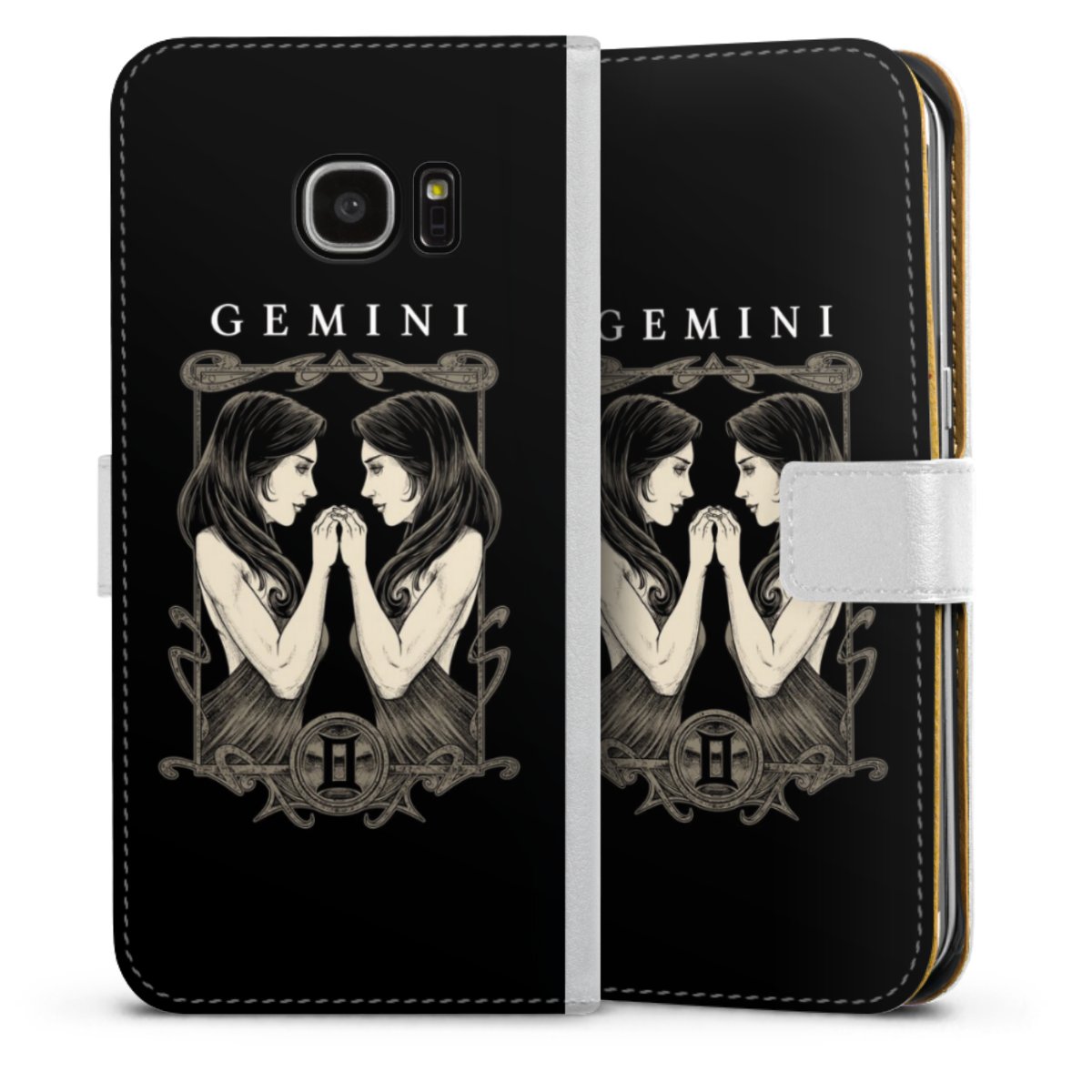 For our Sideflip Case we are using our advanced direct printing technology. The back and frontside are fully printabale, the inside of the phone bag is left unprinted. You can order the phone case without print, printed completely or also with a partial print.
