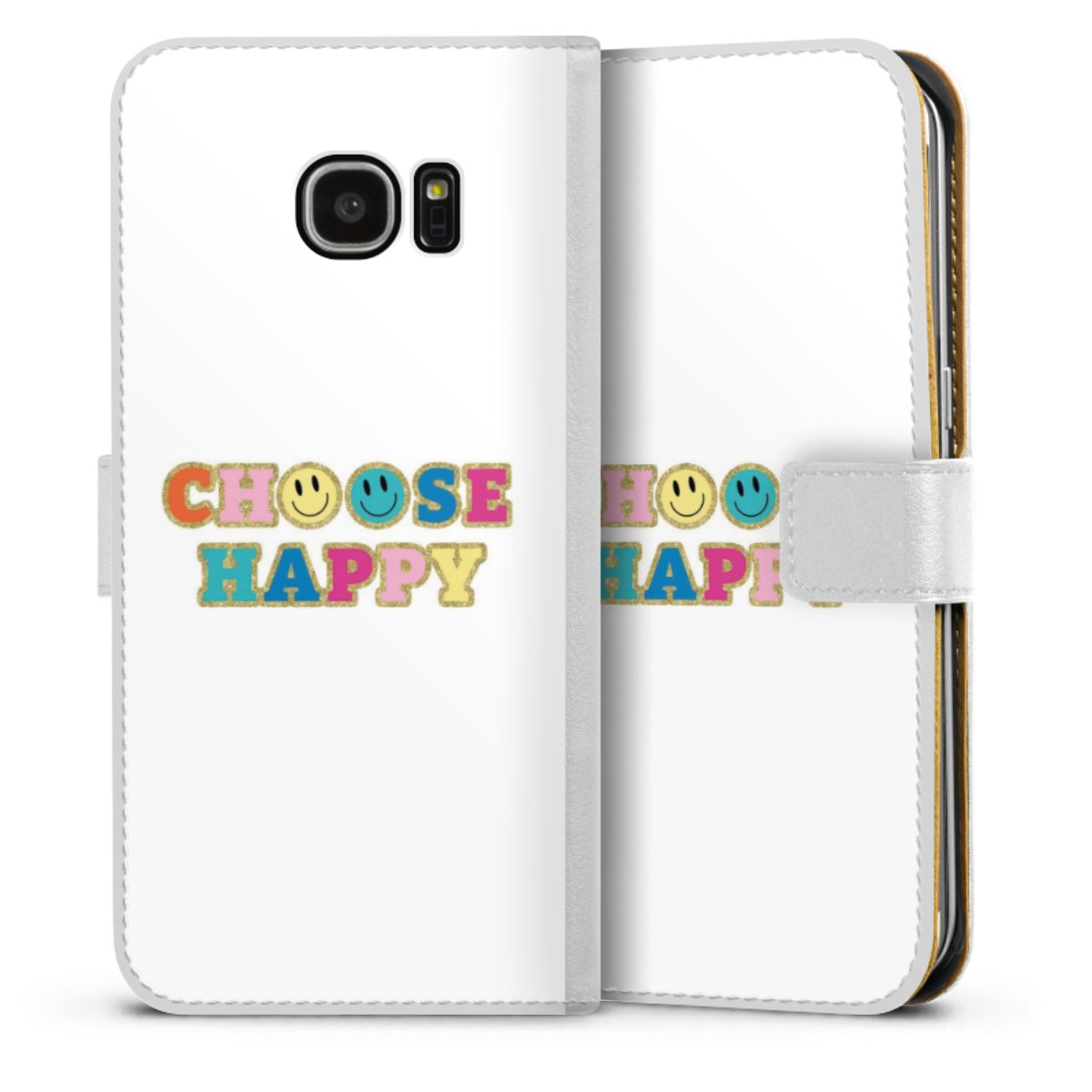For our Sideflip Case we are using our advanced direct printing technology. The back and frontside are fully printabale, the inside of the phone bag is left unprinted. You can order the phone case without print, printed completely or also with a partial print.