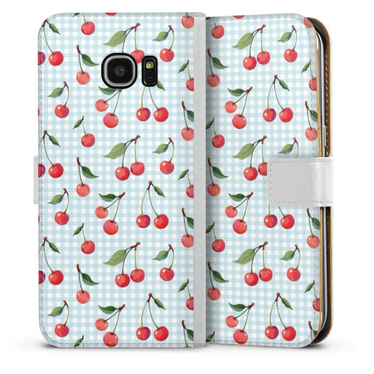 For our Sideflip Case we are using our advanced direct printing technology. The back and frontside are fully printabale, the inside of the phone bag is left unprinted. You can order the phone case without print, printed completely or also with a partial print.