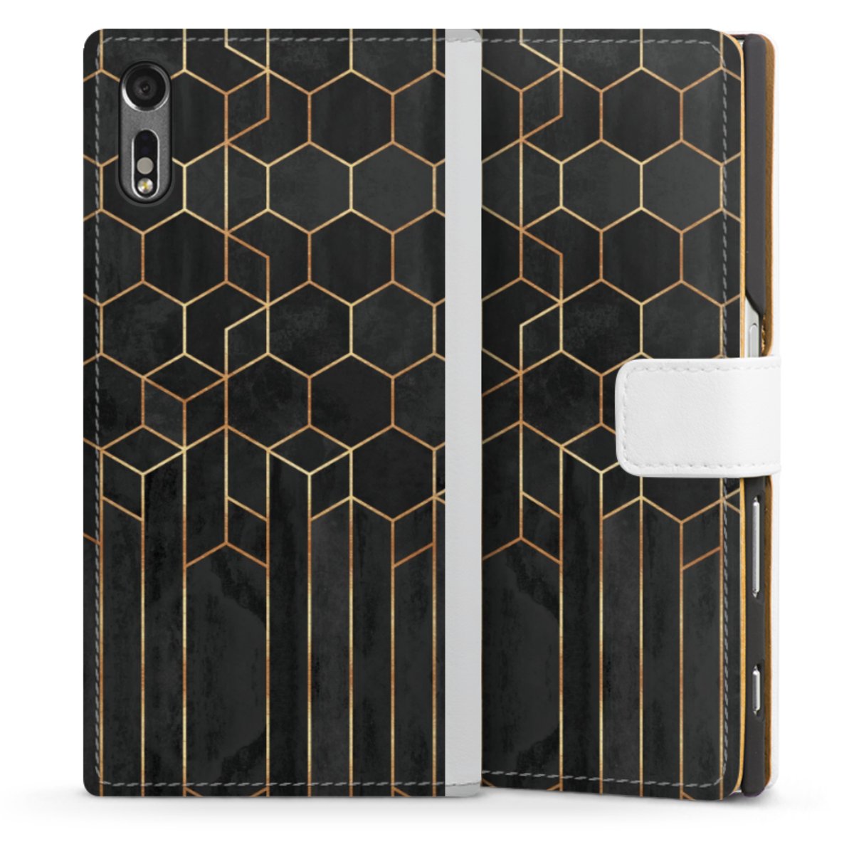 For our Sideflip Case we are using our advanced direct printing technology. The back and frontside are fully printabale, the inside of the phone bag is left unprinted. You can order the phone case without print, printed completely or also with a partial print.