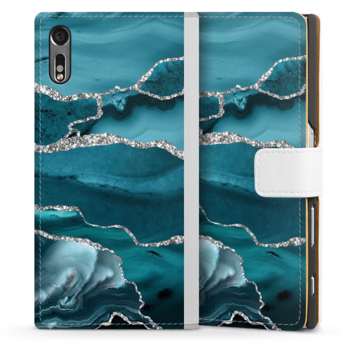 For our Sideflip Case we are using our advanced direct printing technology. The back and frontside are fully printabale, the inside of the phone bag is left unprinted. You can order the phone case without print, printed completely or also with a partial print.