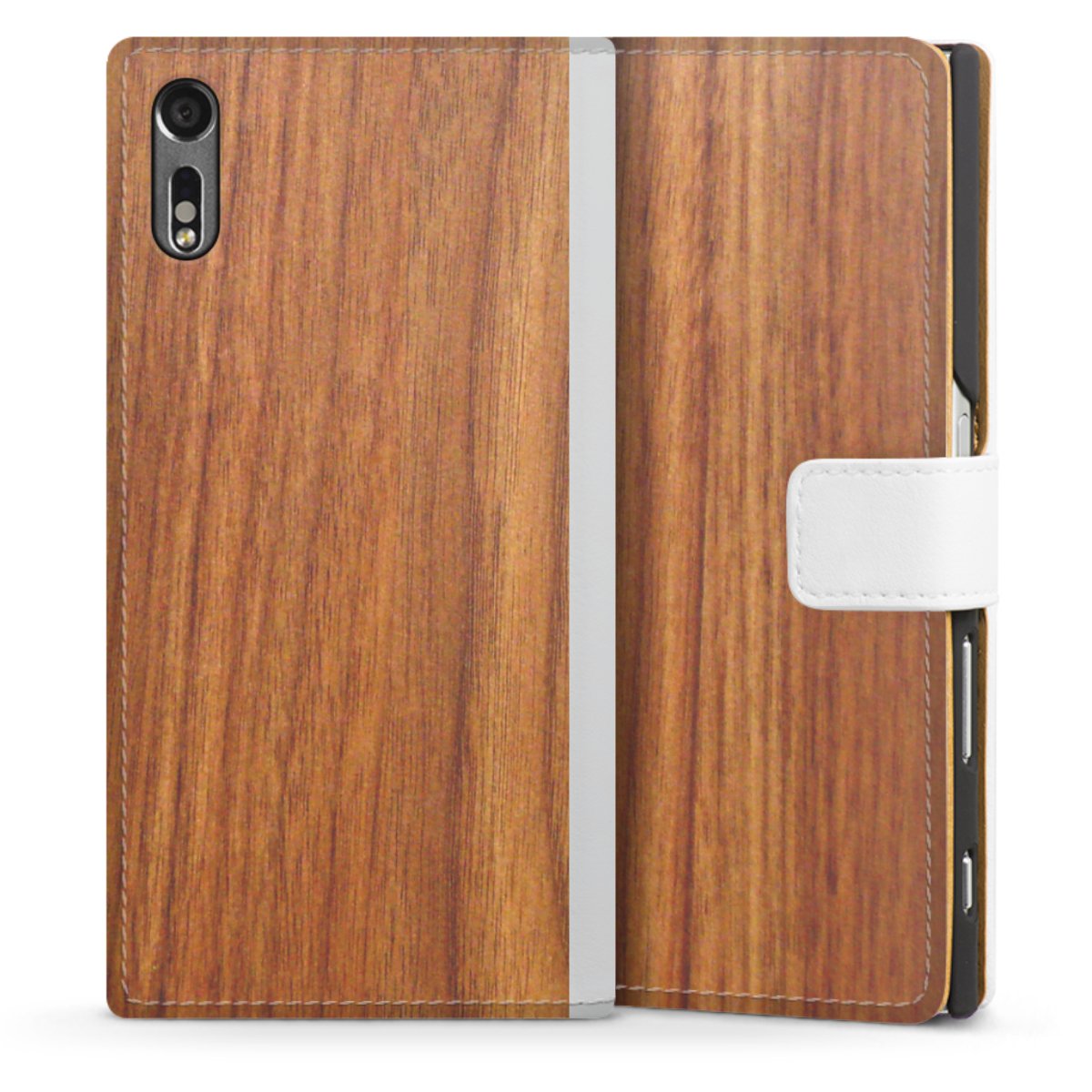 For our Sideflip Case we are using our advanced direct printing technology. The back and frontside are fully printabale, the inside of the phone bag is left unprinted. You can order the phone case without print, printed completely or also with a partial print.