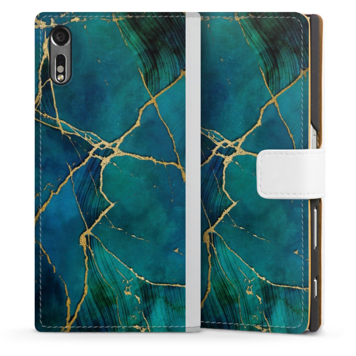 For our Sideflip Case we are using our advanced direct printing technology. The back and frontside are fully printabale, the inside of the phone bag is left unprinted. You can order the phone case without print, printed completely or also with a partial print.