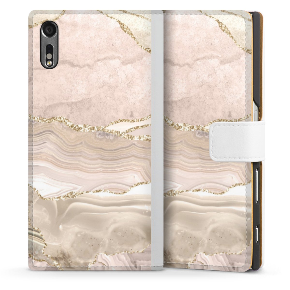 For our Sideflip Case we are using our advanced direct printing technology. The back and frontside are fully printabale, the inside of the phone bag is left unprinted. You can order the phone case without print, printed completely or also with a partial print.