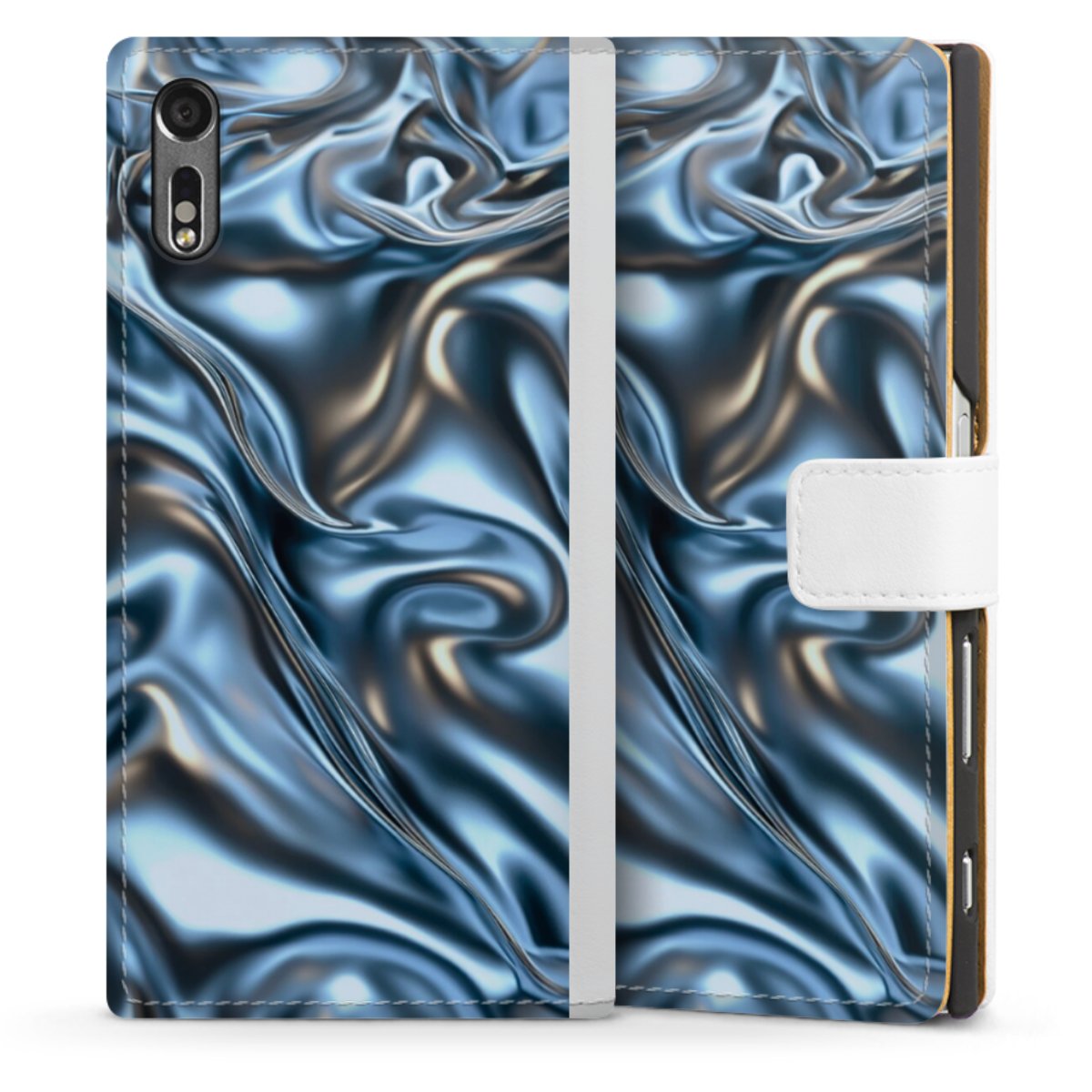 For our Sideflip Case we are using our advanced direct printing technology. The back and frontside are fully printabale, the inside of the phone bag is left unprinted. You can order the phone case without print, printed completely or also with a partial print.
