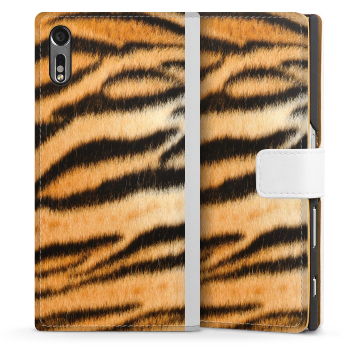 For our Sideflip Case we are using our advanced direct printing technology. The back and frontside are fully printabale, the inside of the phone bag is left unprinted. You can order the phone case without print, printed completely or also with a partial print.
