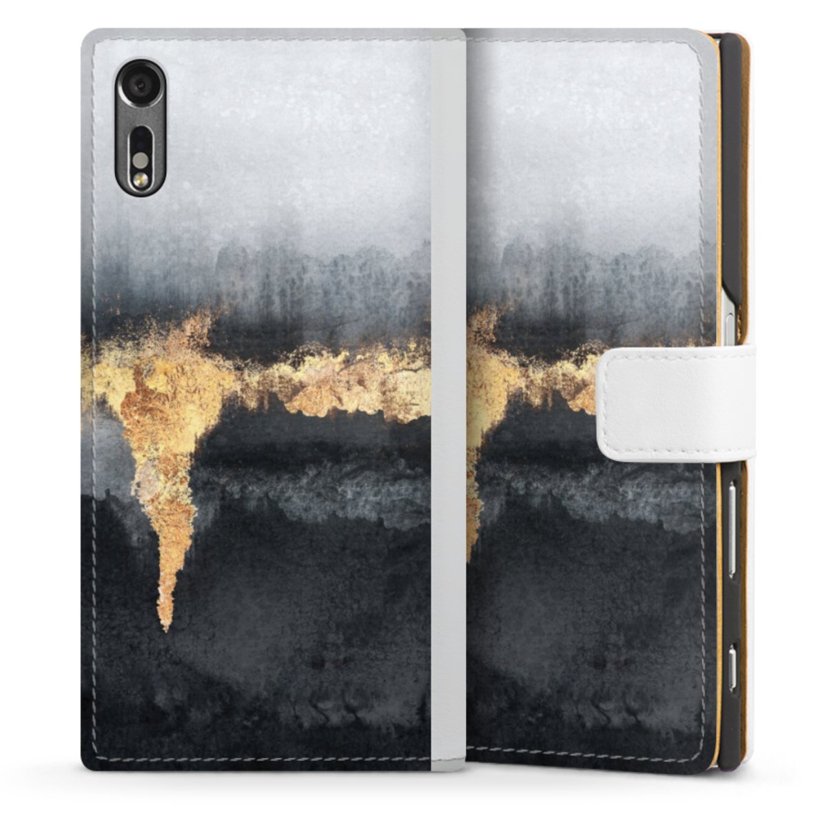 For our Sideflip Case we are using our advanced direct printing technology. The back and frontside are fully printabale, the inside of the phone bag is left unprinted. You can order the phone case without print, printed completely or also with a partial print.