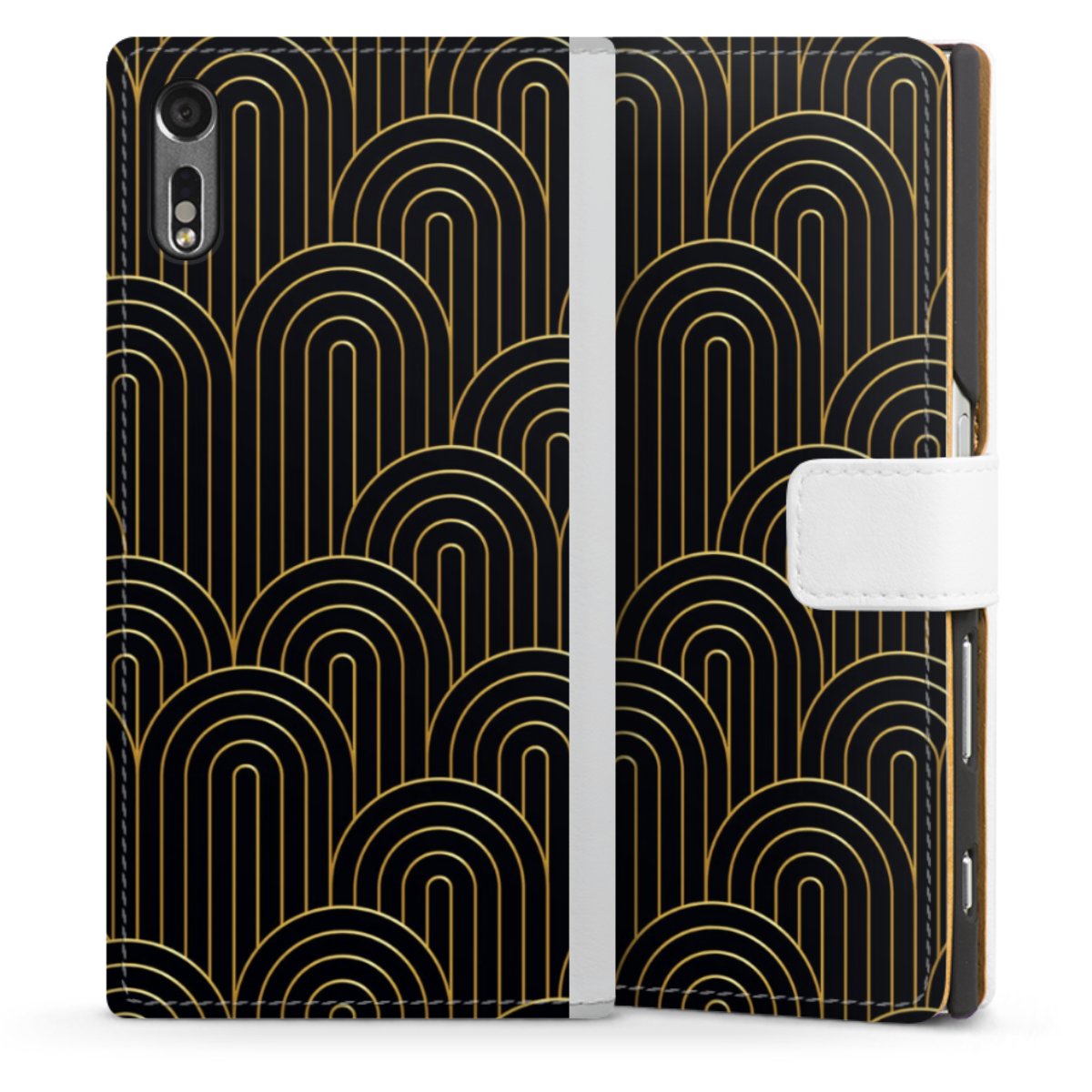 For our Sideflip Case we are using our advanced direct printing technology. The back and frontside are fully printabale, the inside of the phone bag is left unprinted. You can order the phone case without print, printed completely or also with a partial print.