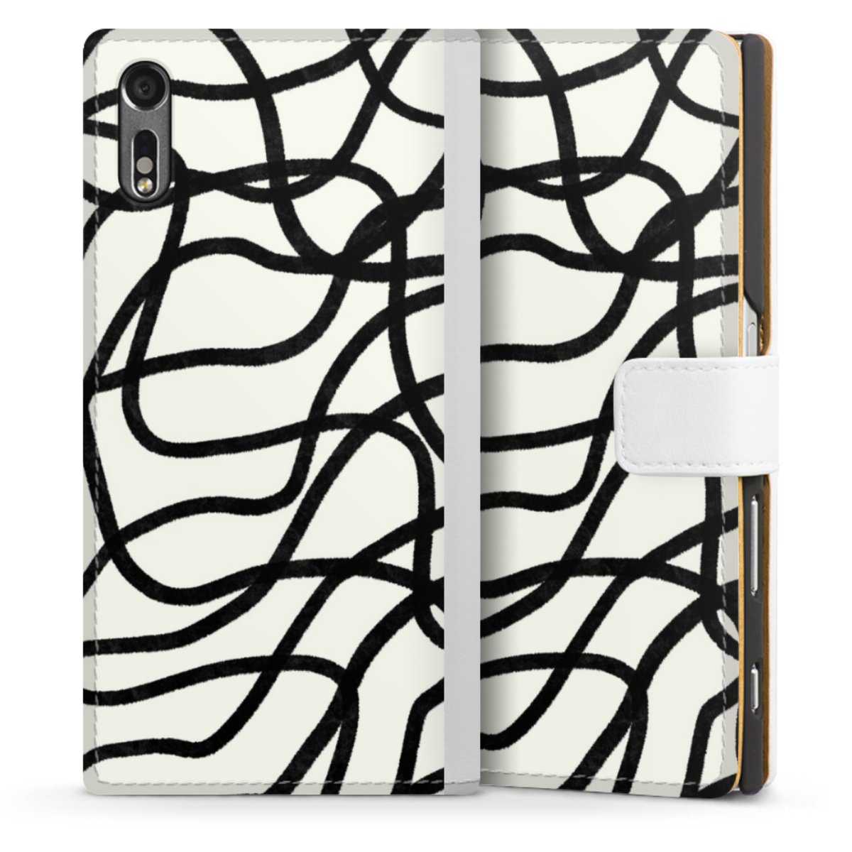 For our Sideflip Case we are using our advanced direct printing technology. The back and frontside are fully printabale, the inside of the phone bag is left unprinted. You can order the phone case without print, printed completely or also with a partial print.