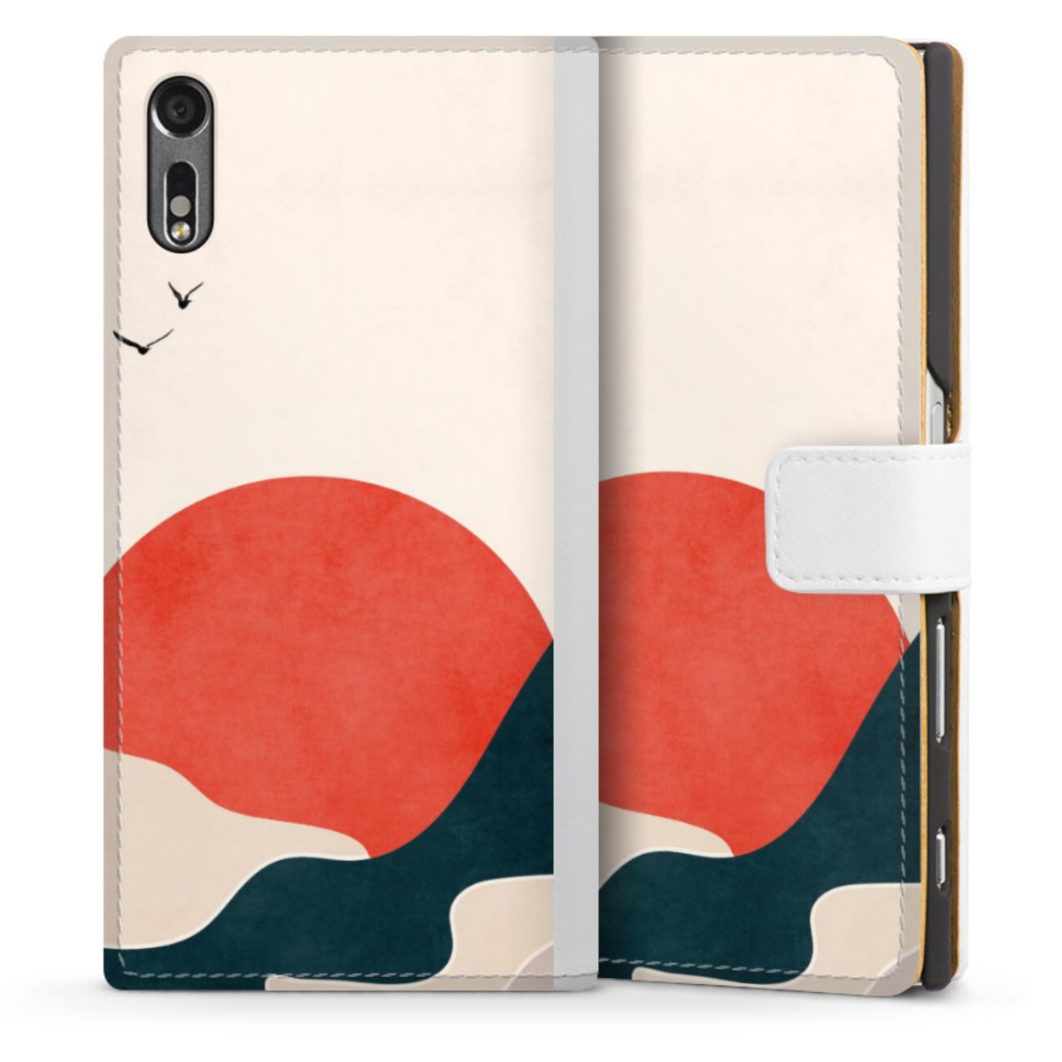 For our Sideflip Case we are using our advanced direct printing technology. The back and frontside are fully printabale, the inside of the phone bag is left unprinted. You can order the phone case without print, printed completely or also with a partial print.