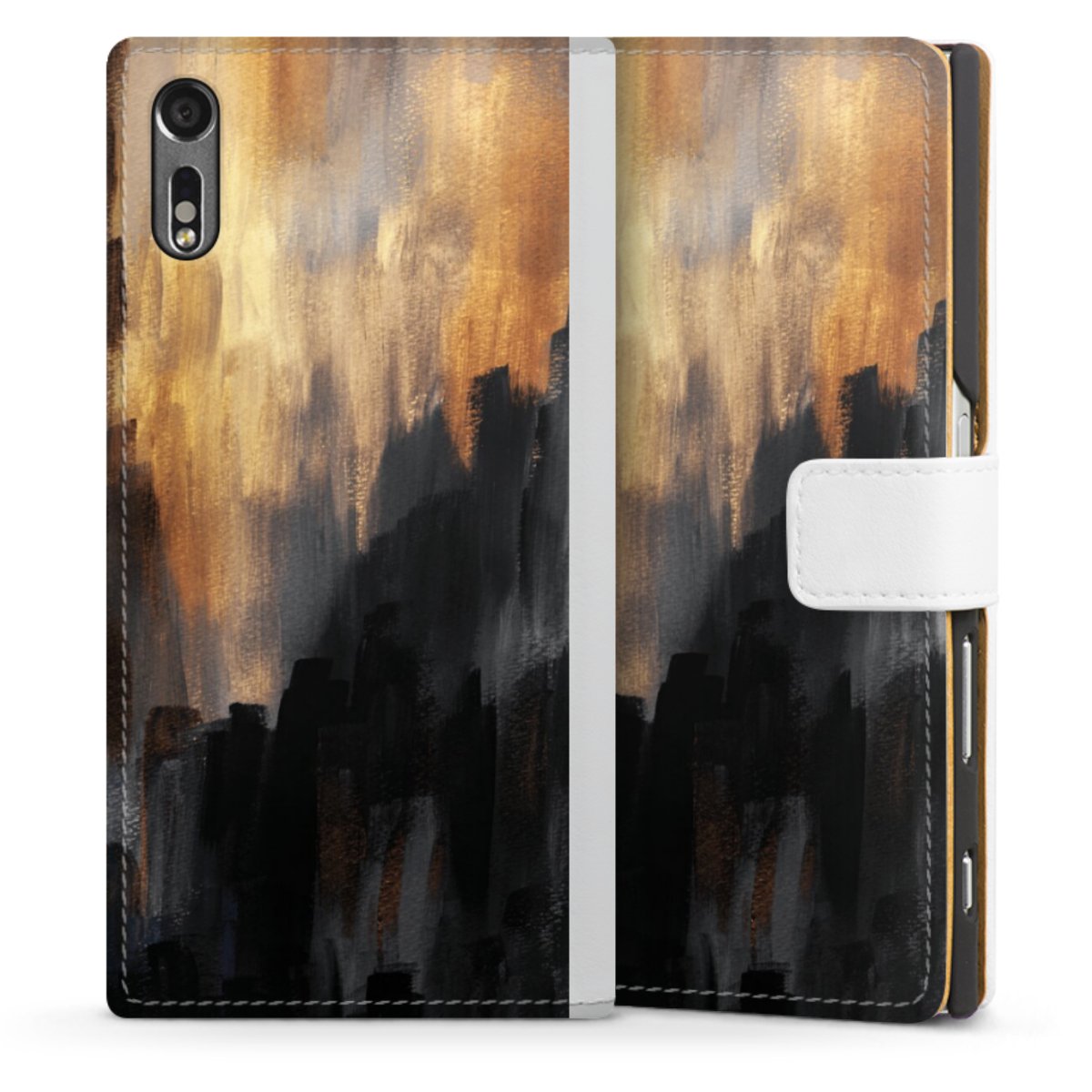 For our Sideflip Case we are using our advanced direct printing technology. The back and frontside are fully printabale, the inside of the phone bag is left unprinted. You can order the phone case without print, printed completely or also with a partial print.
