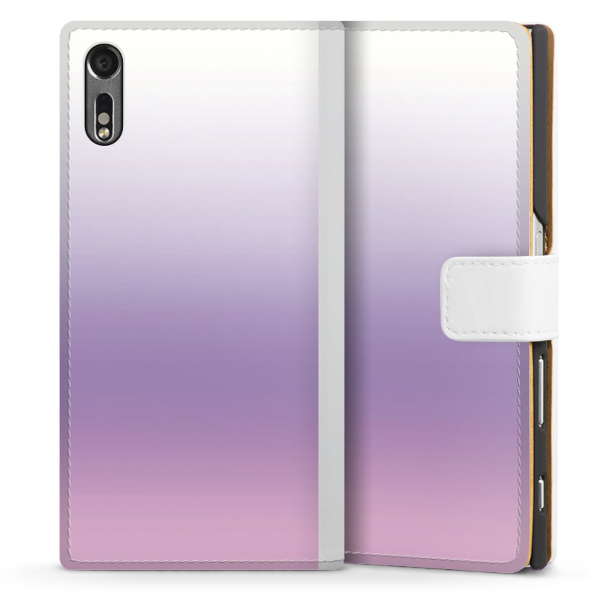 For our Sideflip Case we are using our advanced direct printing technology. The back and frontside are fully printabale, the inside of the phone bag is left unprinted. You can order the phone case without print, printed completely or also with a partial print.