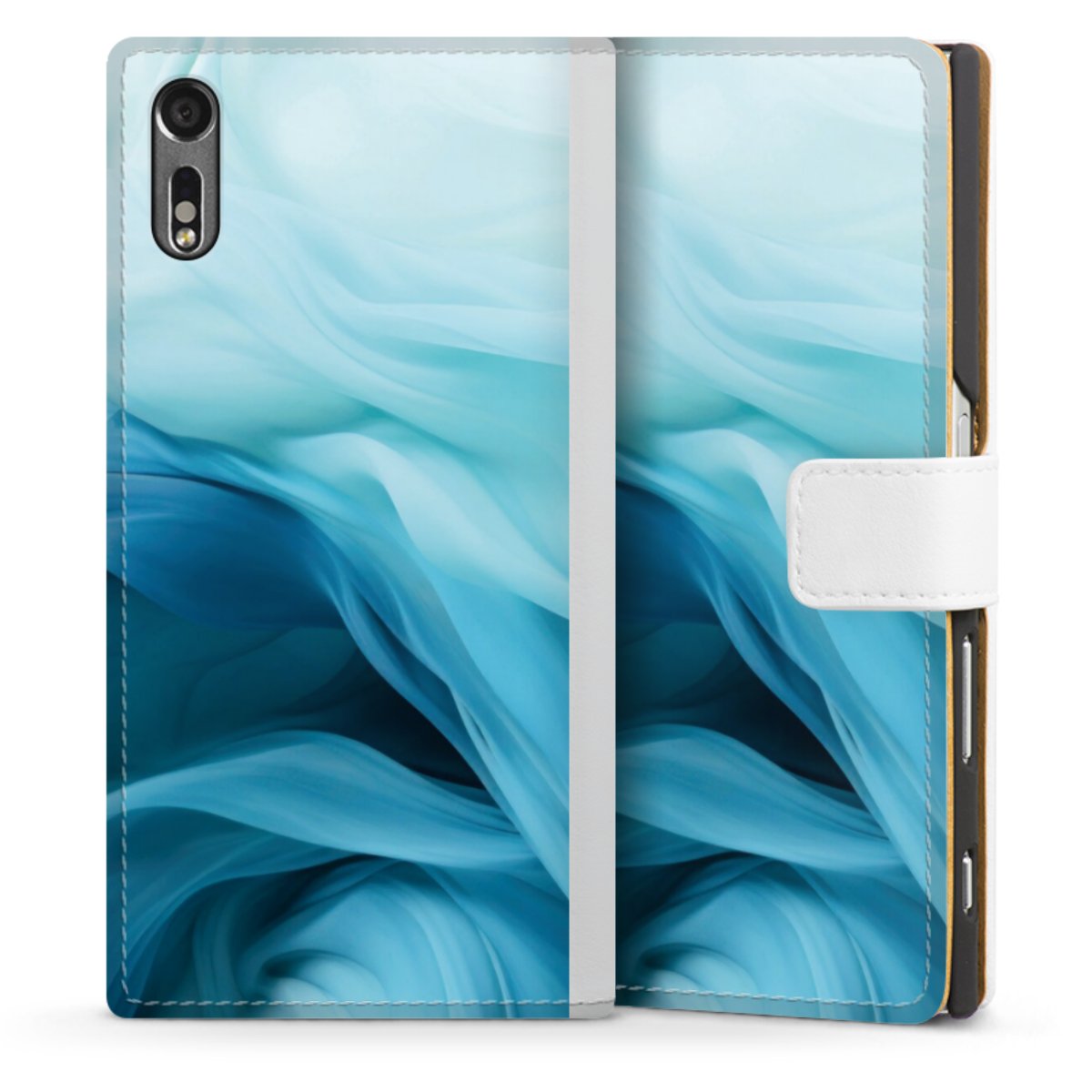 For our Sideflip Case we are using our advanced direct printing technology. The back and frontside are fully printabale, the inside of the phone bag is left unprinted. You can order the phone case without print, printed completely or also with a partial print.