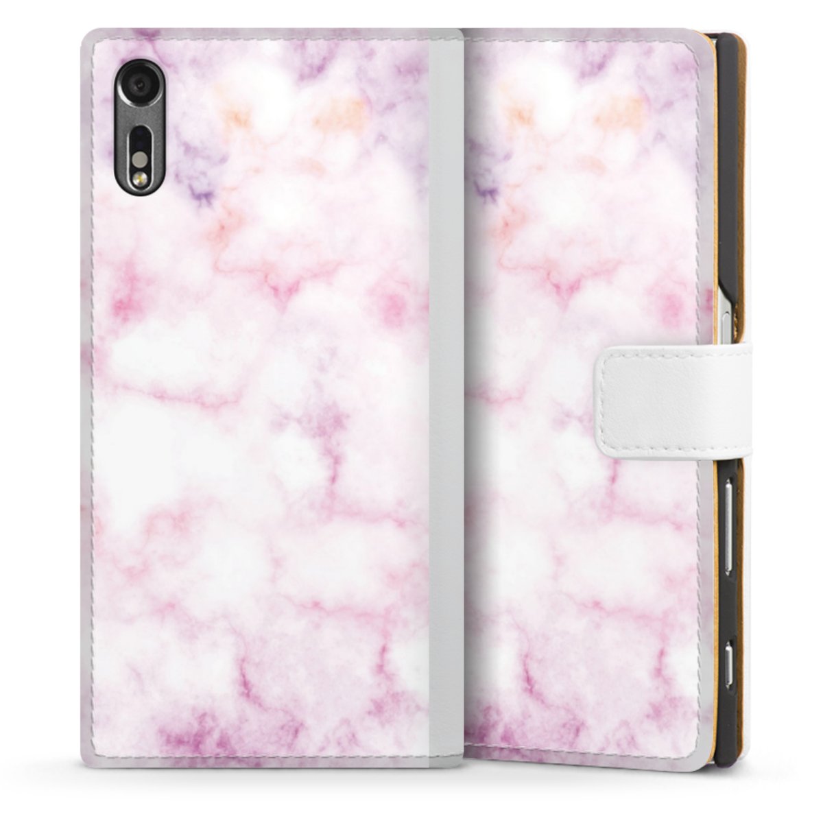 For our Sideflip Case we are using our advanced direct printing technology. The back and frontside are fully printabale, the inside of the phone bag is left unprinted. You can order the phone case without print, printed completely or also with a partial print.