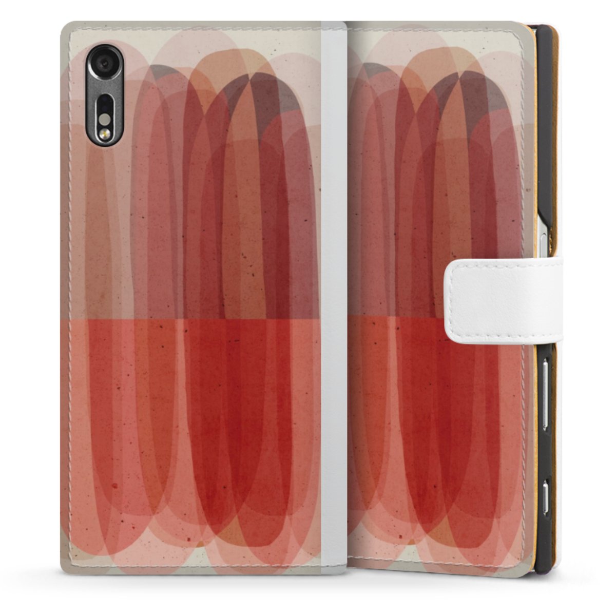 For our Sideflip Case we are using our advanced direct printing technology. The back and frontside are fully printabale, the inside of the phone bag is left unprinted. You can order the phone case without print, printed completely or also with a partial print.