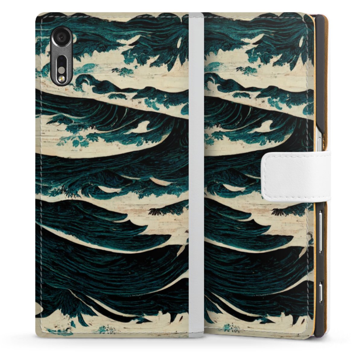 For our Sideflip Case we are using our advanced direct printing technology. The back and frontside are fully printabale, the inside of the phone bag is left unprinted. You can order the phone case without print, printed completely or also with a partial print.