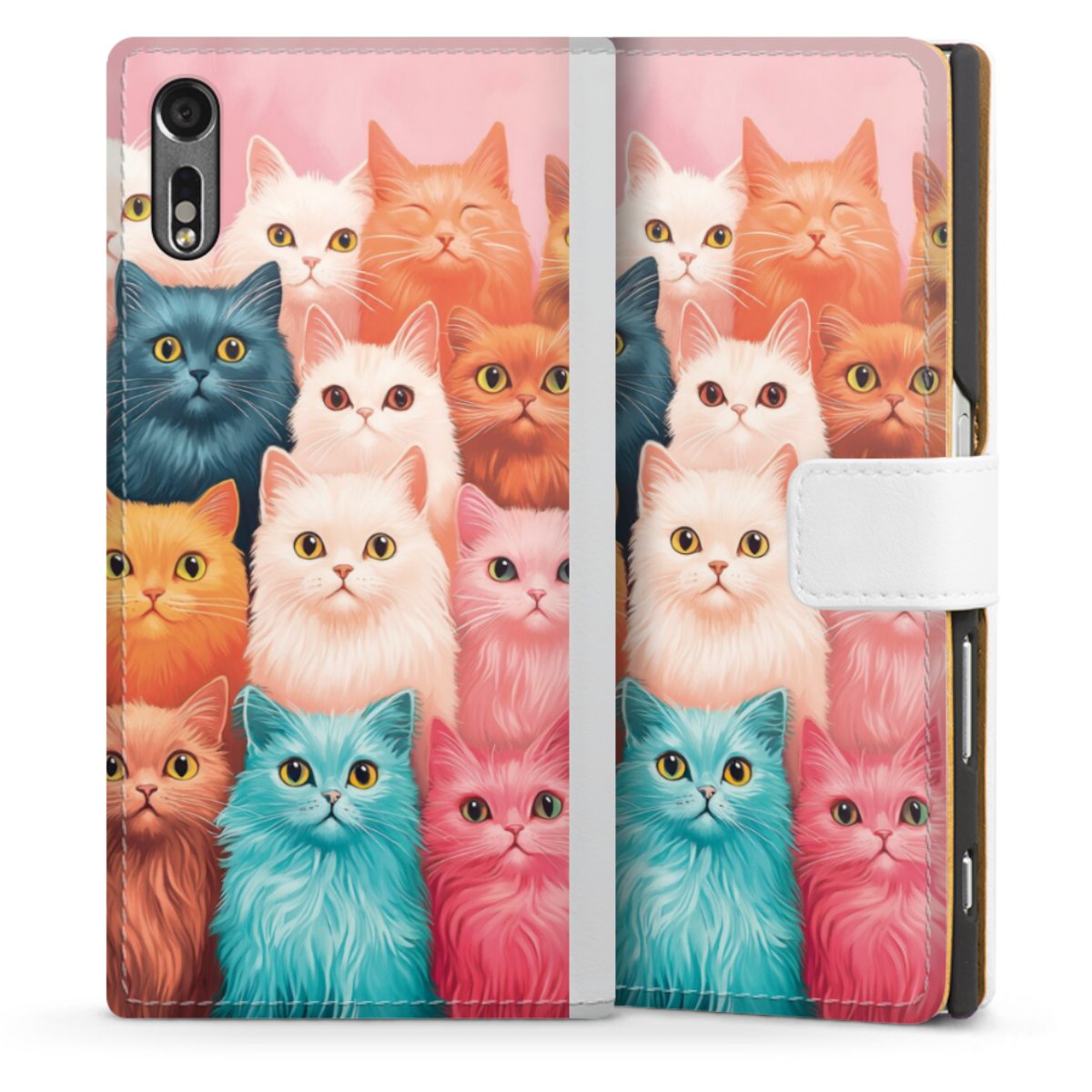 For our Sideflip Case we are using our advanced direct printing technology. The back and frontside are fully printabale, the inside of the phone bag is left unprinted. You can order the phone case without print, printed completely or also with a partial print.