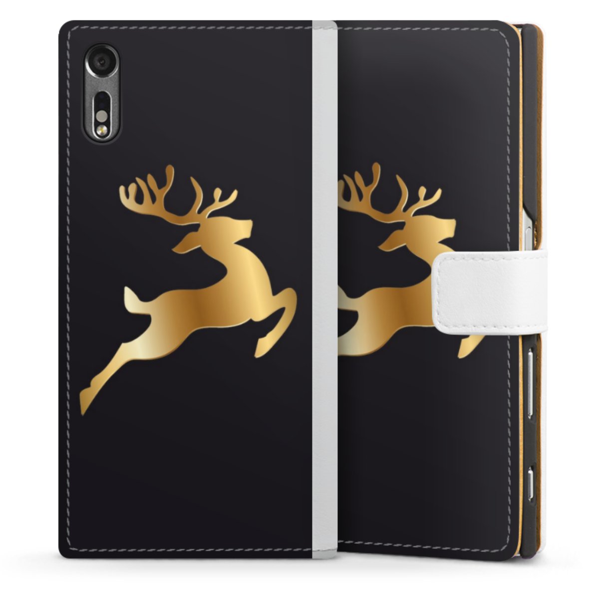 For our Sideflip Case we are using our advanced direct printing technology. The back and frontside are fully printabale, the inside of the phone bag is left unprinted. You can order the phone case without print, printed completely or also with a partial print.