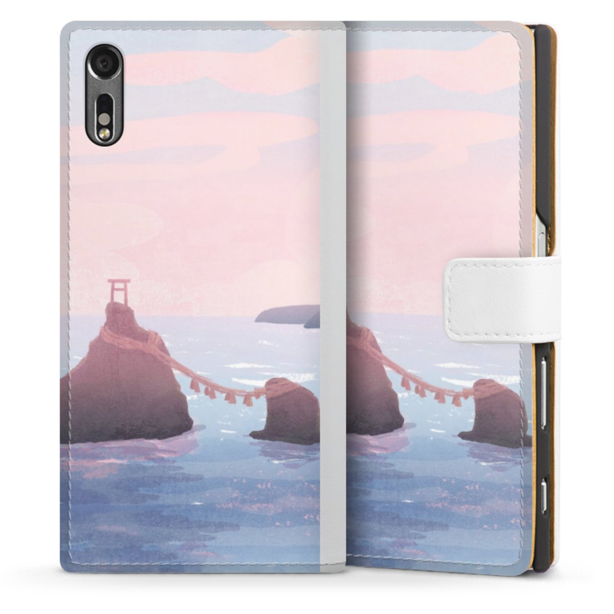 For our Sideflip Case we are using our advanced direct printing technology. The back and frontside are fully printabale, the inside of the phone bag is left unprinted. You can order the phone case without print, printed completely or also with a partial print.