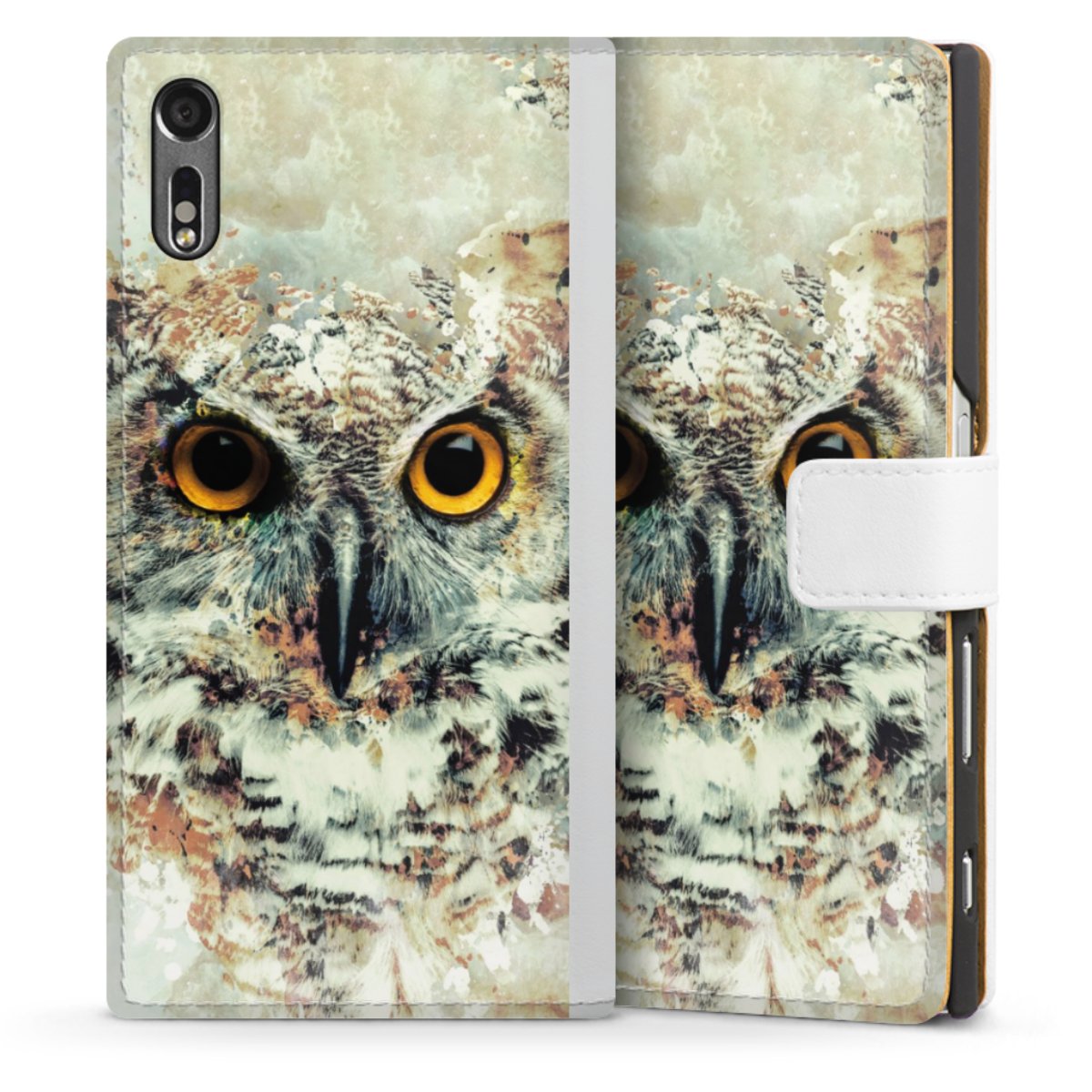 For our Sideflip Case we are using our advanced direct printing technology. The back and frontside are fully printabale, the inside of the phone bag is left unprinted. You can order the phone case without print, printed completely or also with a partial print.