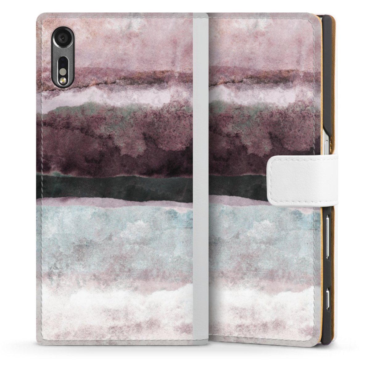 For our Sideflip Case we are using our advanced direct printing technology. The back and frontside are fully printabale, the inside of the phone bag is left unprinted. You can order the phone case without print, printed completely or also with a partial print.