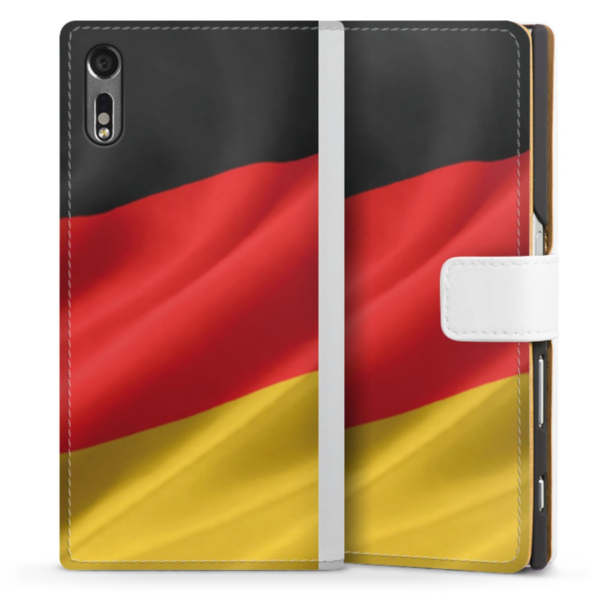 For our Sideflip Case we are using our advanced direct printing technology. The back and frontside are fully printabale, the inside of the phone bag is left unprinted. You can order the phone case without print, printed completely or also with a partial print.