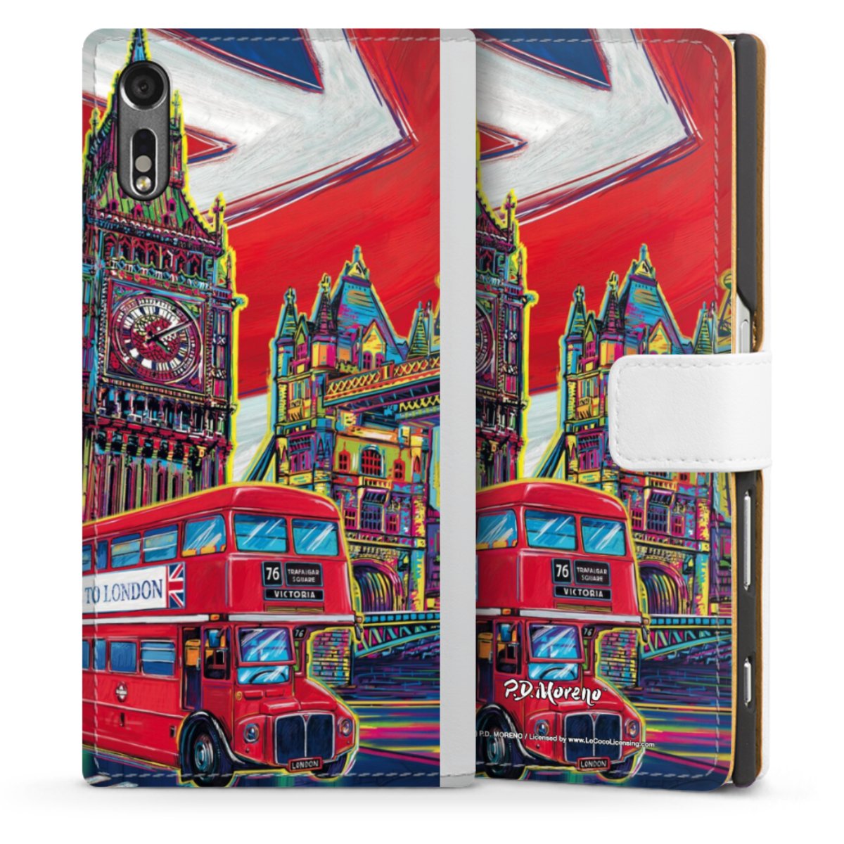 For our Sideflip Case we are using our advanced direct printing technology. The back and frontside are fully printabale, the inside of the phone bag is left unprinted. You can order the phone case without print, printed completely or also with a partial print.