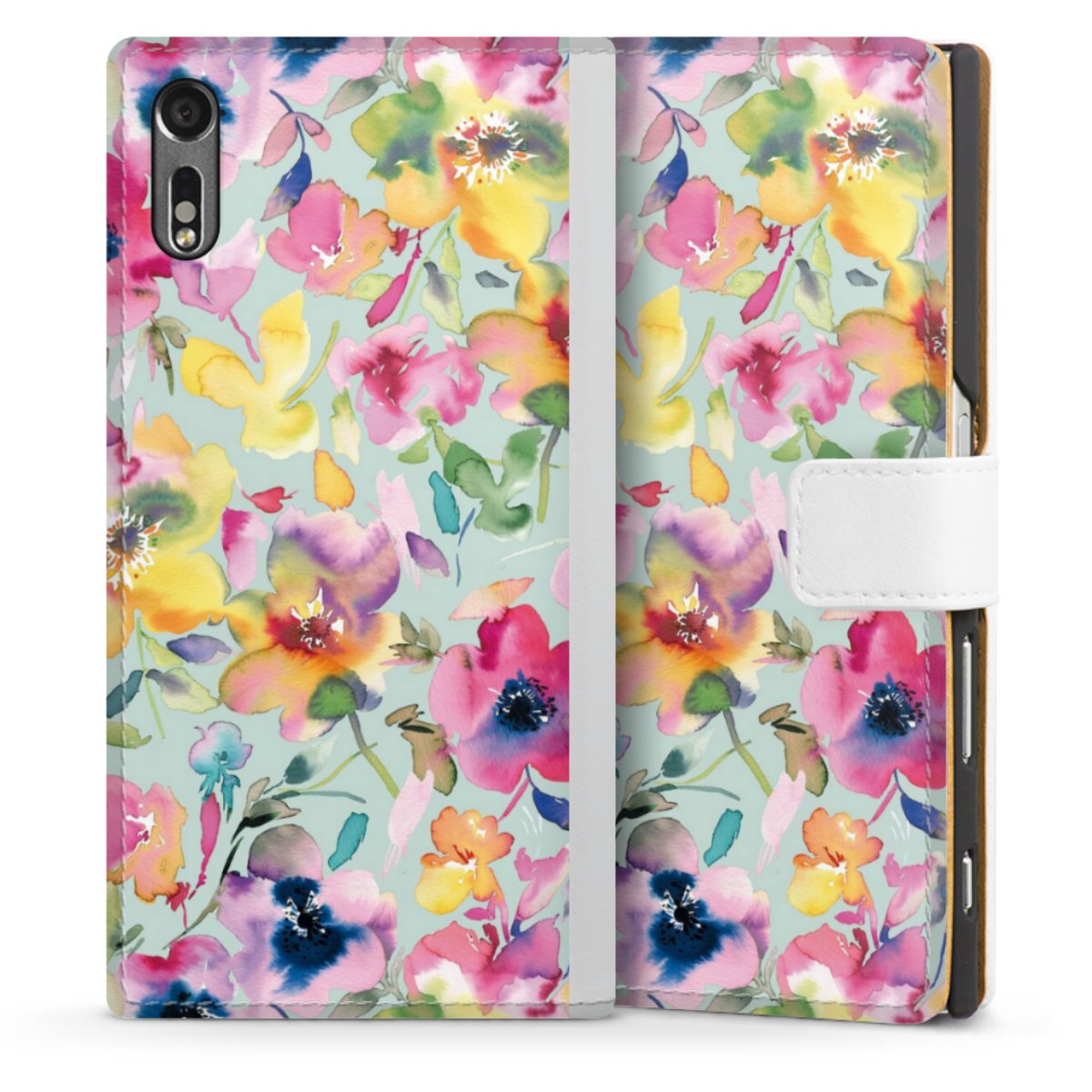 For our Sideflip Case we are using our advanced direct printing technology. The back and frontside are fully printabale, the inside of the phone bag is left unprinted. You can order the phone case without print, printed completely or also with a partial print.