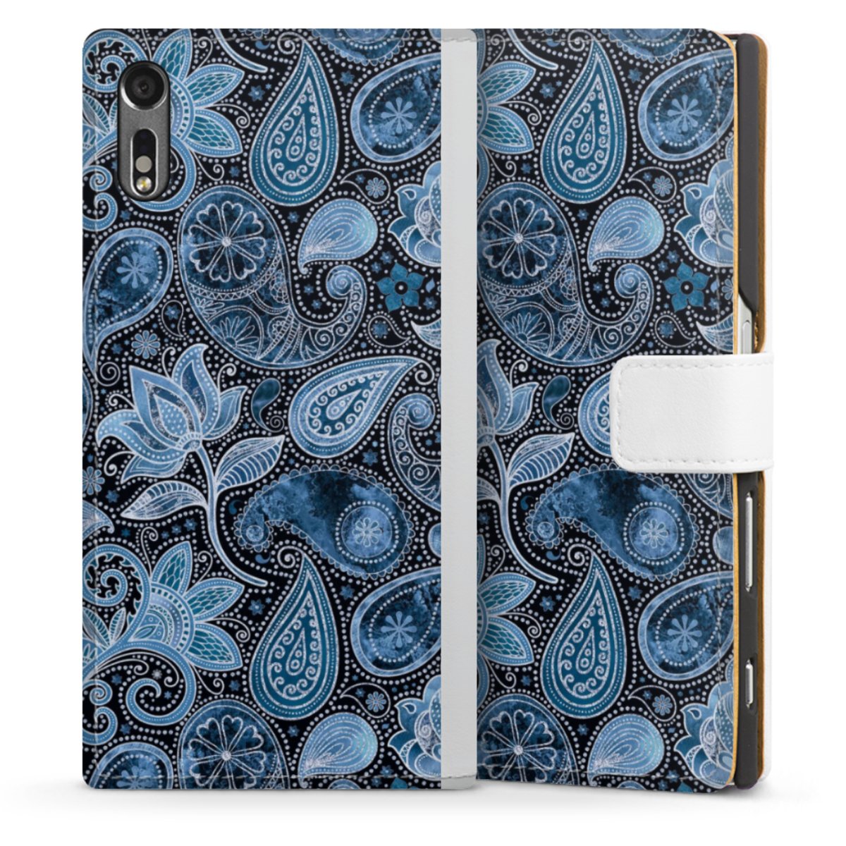 For our Sideflip Case we are using our advanced direct printing technology. The back and frontside are fully printabale, the inside of the phone bag is left unprinted. You can order the phone case without print, printed completely or also with a partial print.