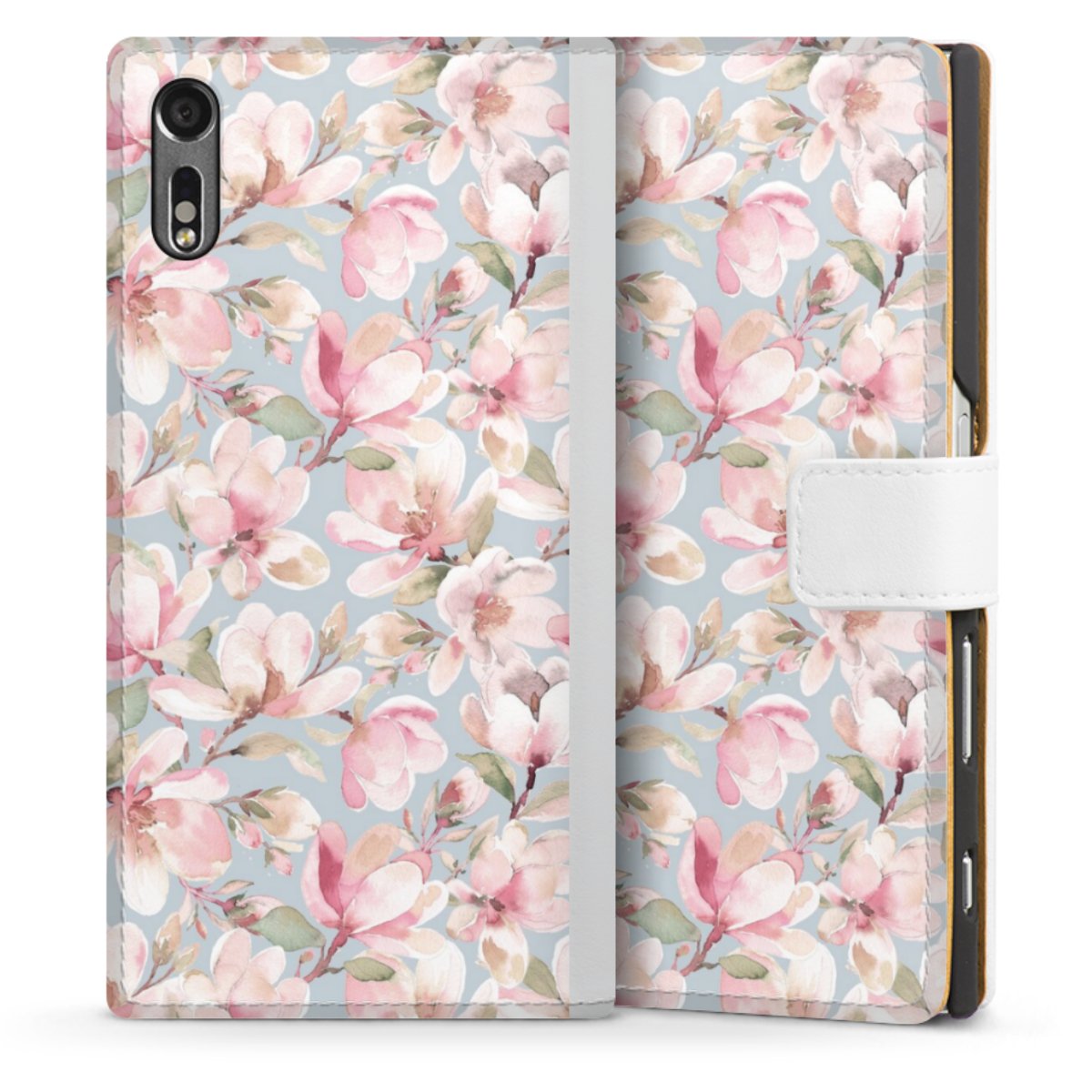 For our Sideflip Case we are using our advanced direct printing technology. The back and frontside are fully printabale, the inside of the phone bag is left unprinted. You can order the phone case without print, printed completely or also with a partial print.