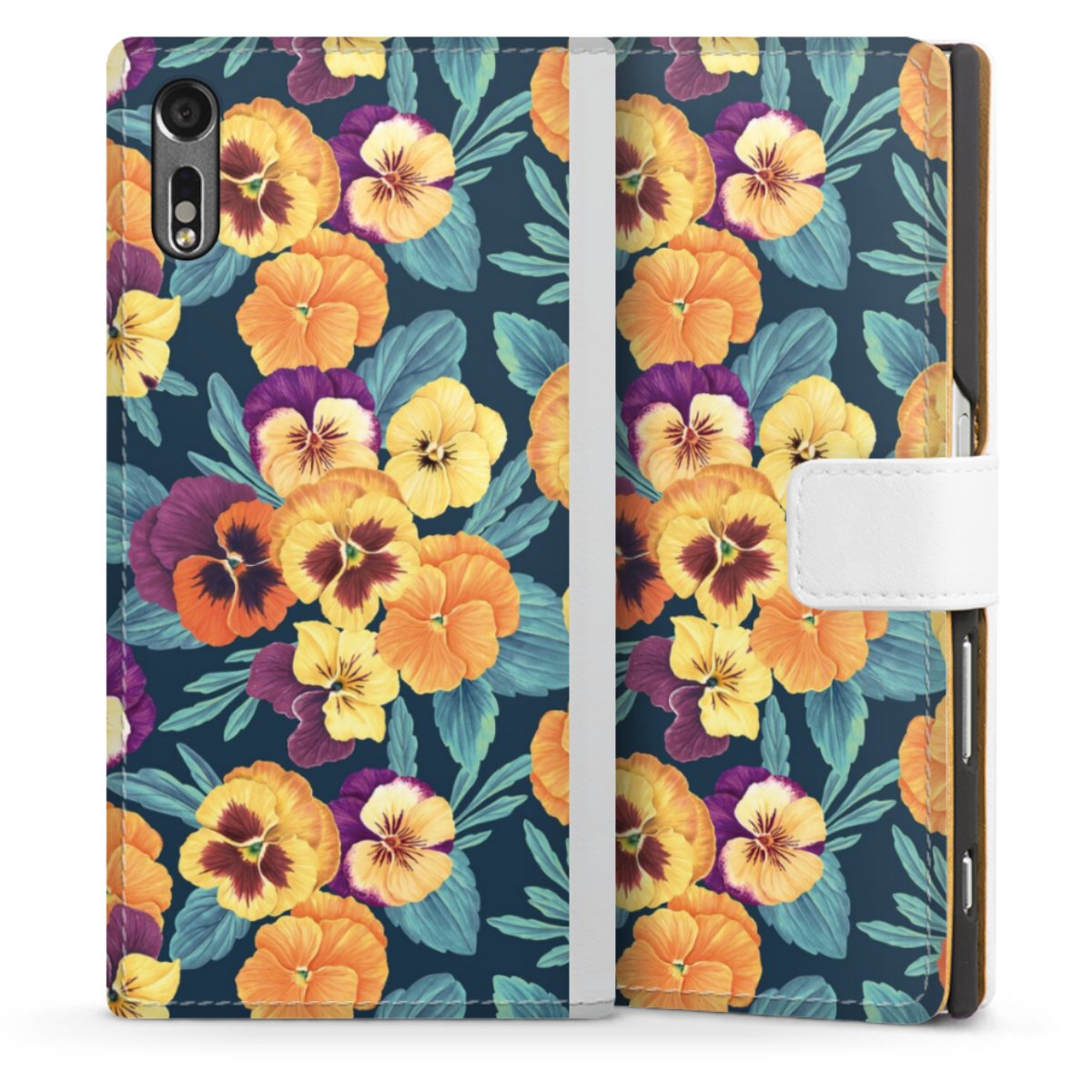 For our Sideflip Case we are using our advanced direct printing technology. The back and frontside are fully printabale, the inside of the phone bag is left unprinted. You can order the phone case without print, printed completely or also with a partial print.