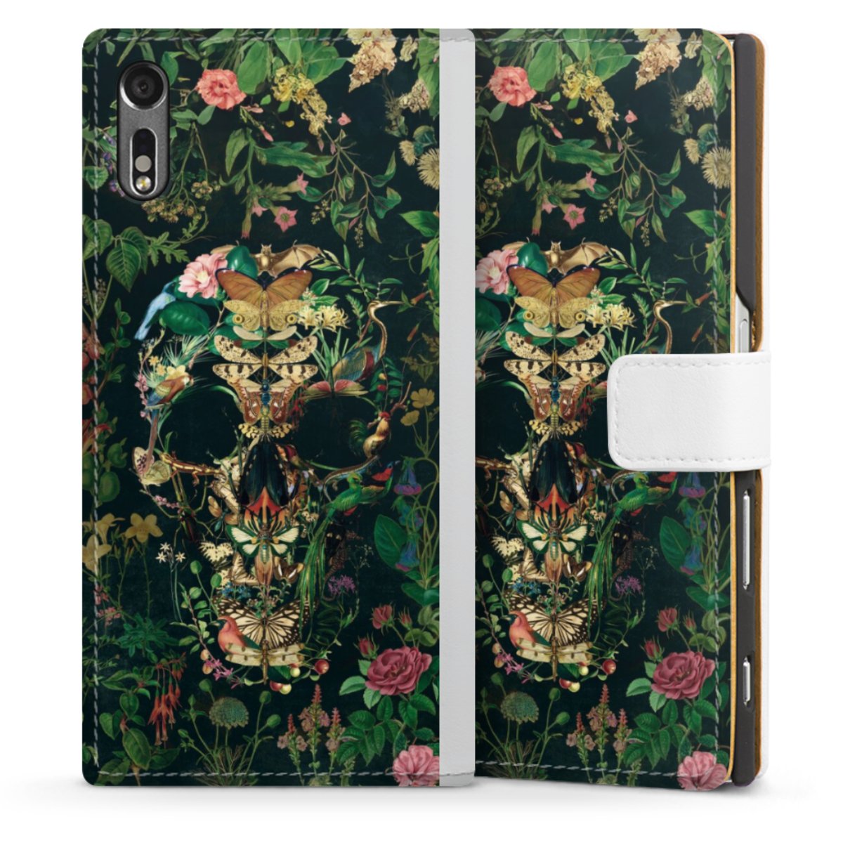 For our Sideflip Case we are using our advanced direct printing technology. The back and frontside are fully printabale, the inside of the phone bag is left unprinted. You can order the phone case without print, printed completely or also with a partial print.
