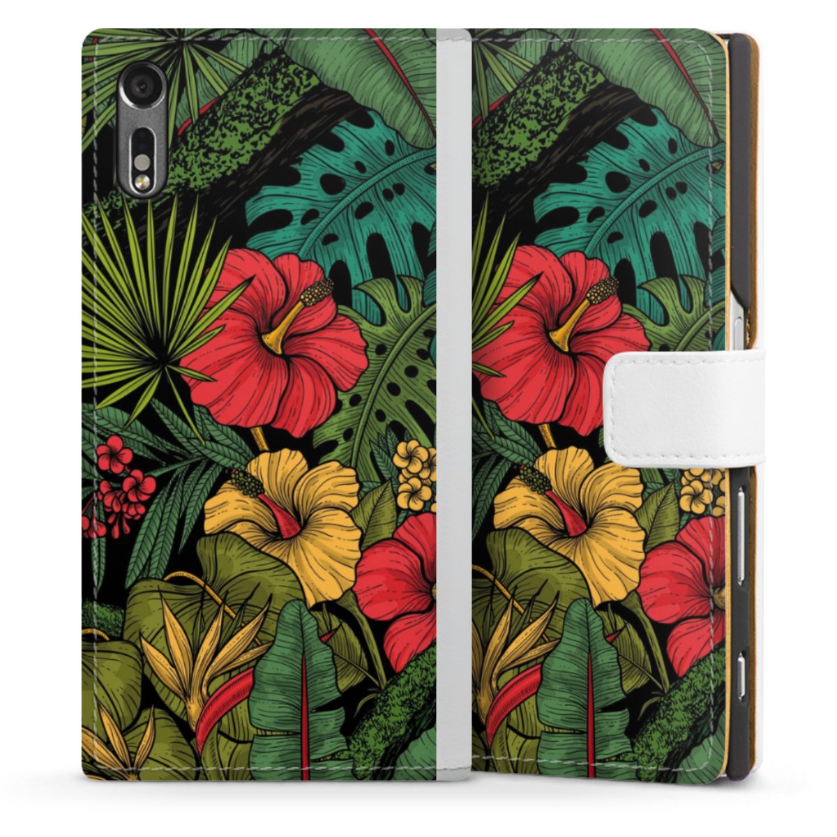 For our Sideflip Case we are using our advanced direct printing technology. The back and frontside are fully printabale, the inside of the phone bag is left unprinted. You can order the phone case without print, printed completely or also with a partial print.