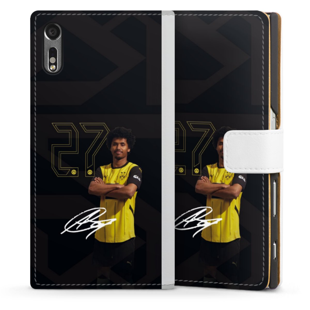 For our Sideflip Case we are using our advanced direct printing technology. The back and frontside are fully printabale, the inside of the phone bag is left unprinted. You can order the phone case without print, printed completely or also with a partial print.