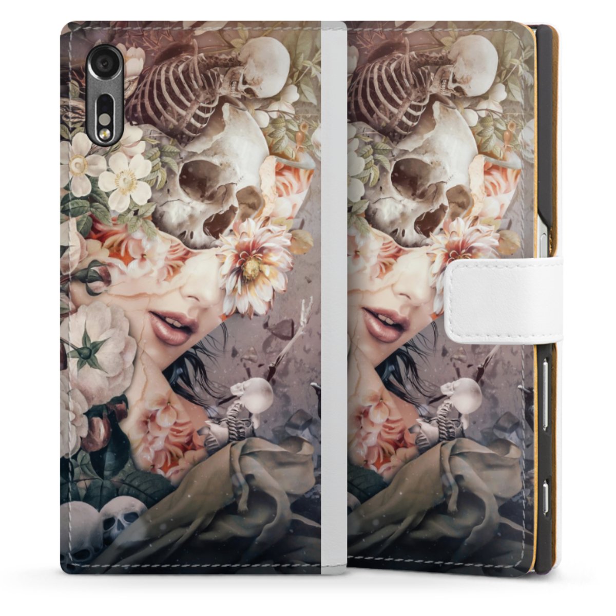 For our Sideflip Case we are using our advanced direct printing technology. The back and frontside are fully printabale, the inside of the phone bag is left unprinted. You can order the phone case without print, printed completely or also with a partial print.