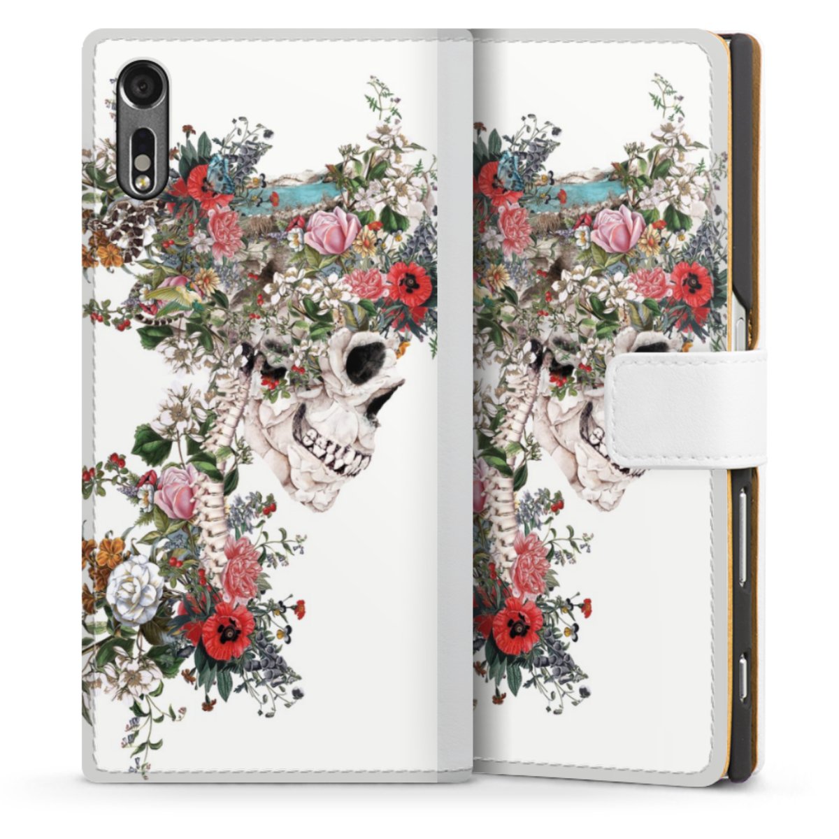 For our Sideflip Case we are using our advanced direct printing technology. The back and frontside are fully printabale, the inside of the phone bag is left unprinted. You can order the phone case without print, printed completely or also with a partial print.