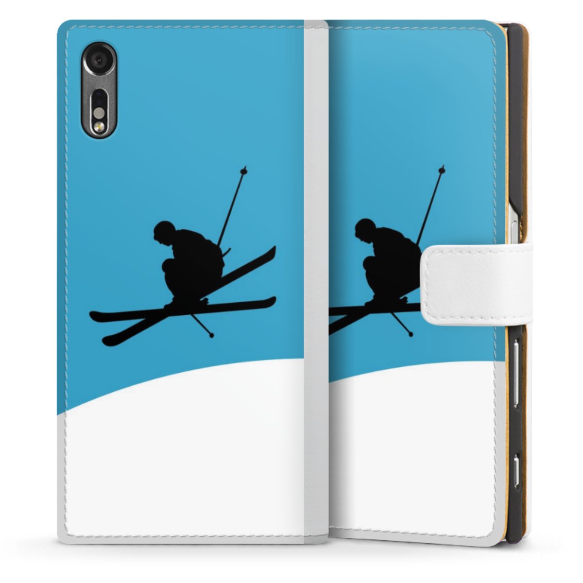 For our Sideflip Case we are using our advanced direct printing technology. The back and frontside are fully printabale, the inside of the phone bag is left unprinted. You can order the phone case without print, printed completely or also with a partial print.
