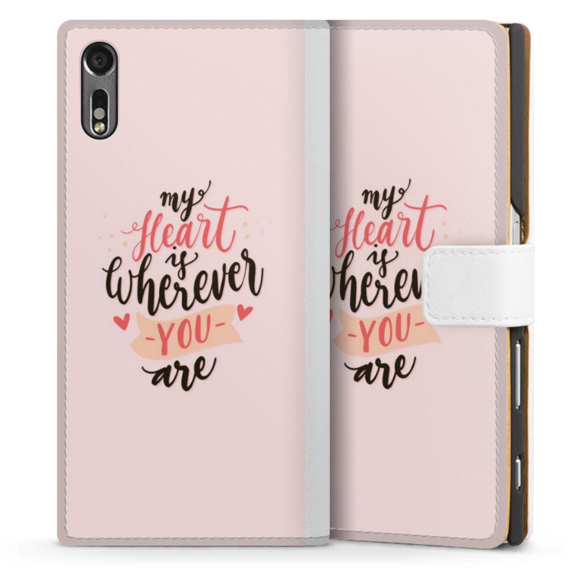 For our Sideflip Case we are using our advanced direct printing technology. The back and frontside are fully printabale, the inside of the phone bag is left unprinted. You can order the phone case without print, printed completely or also with a partial print.
