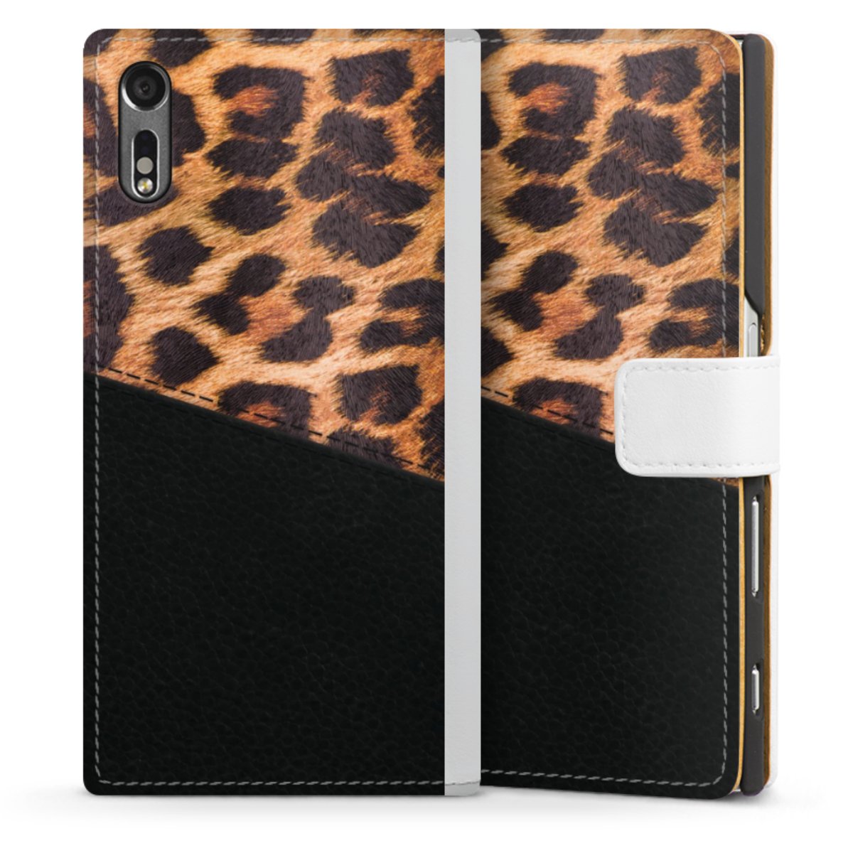 For our Sideflip Case we are using our advanced direct printing technology. The back and frontside are fully printabale, the inside of the phone bag is left unprinted. You can order the phone case without print, printed completely or also with a partial print.