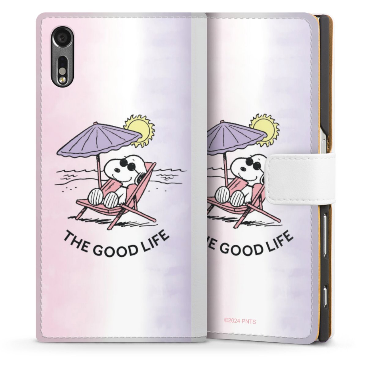 For our Sideflip Case we are using our advanced direct printing technology. The back and frontside are fully printabale, the inside of the phone bag is left unprinted. You can order the phone case without print, printed completely or also with a partial print.