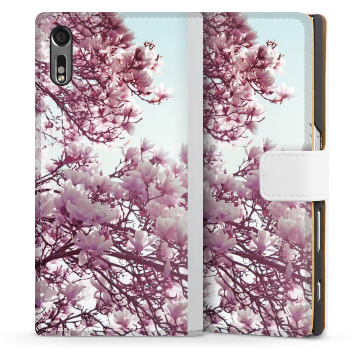 For our Sideflip Case we are using our advanced direct printing technology. The back and frontside are fully printabale, the inside of the phone bag is left unprinted. You can order the phone case without print, printed completely or also with a partial print.
