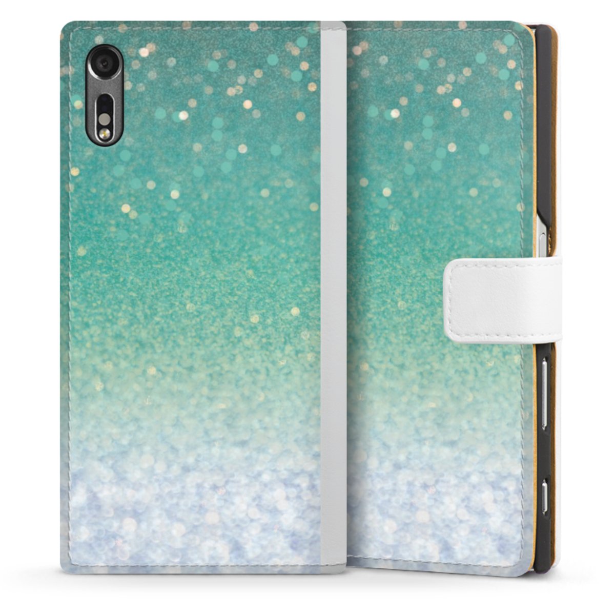 For our Sideflip Case we are using our advanced direct printing technology. The back and frontside are fully printabale, the inside of the phone bag is left unprinted. You can order the phone case without print, printed completely or also with a partial print.