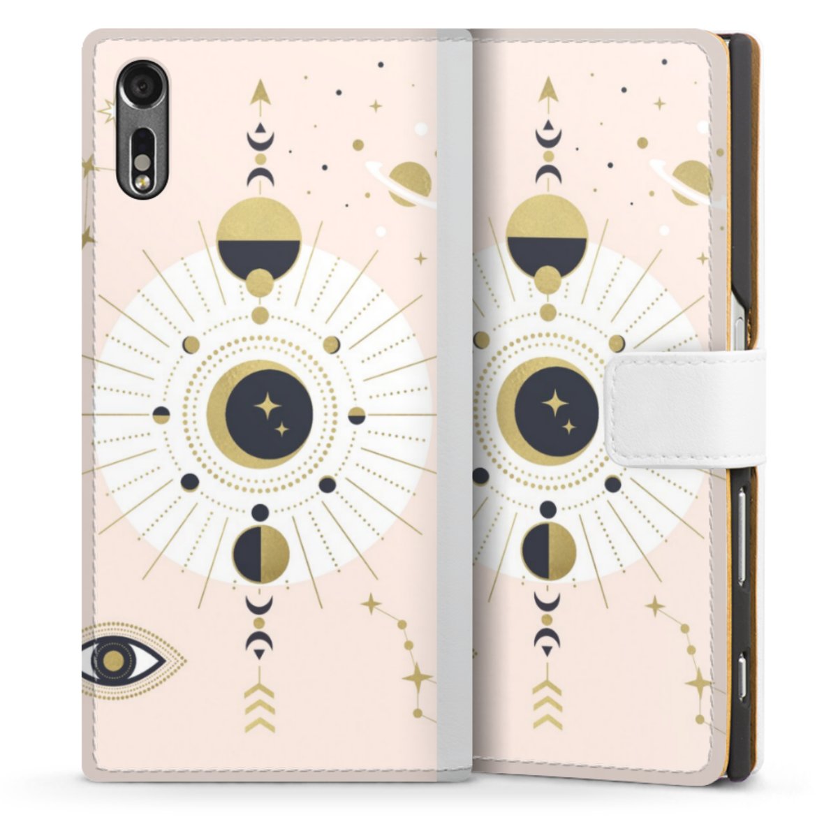 For our Sideflip Case we are using our advanced direct printing technology. The back and frontside are fully printabale, the inside of the phone bag is left unprinted. You can order the phone case without print, printed completely or also with a partial print.