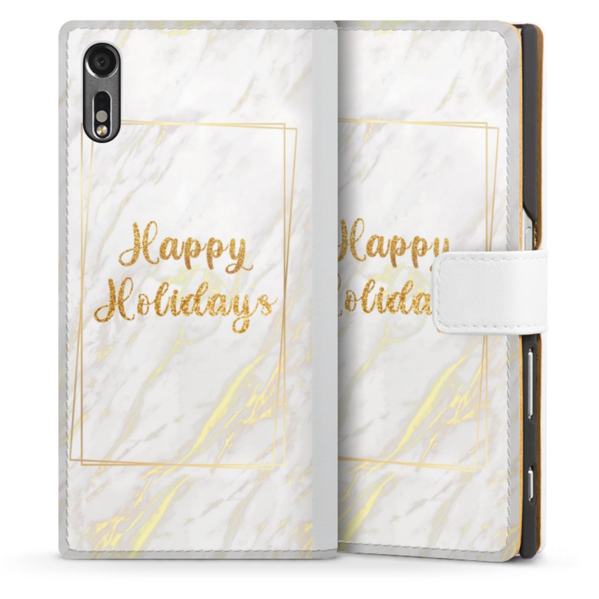 For our Sideflip Case we are using our advanced direct printing technology. The back and frontside are fully printabale, the inside of the phone bag is left unprinted. You can order the phone case without print, printed completely or also with a partial print.