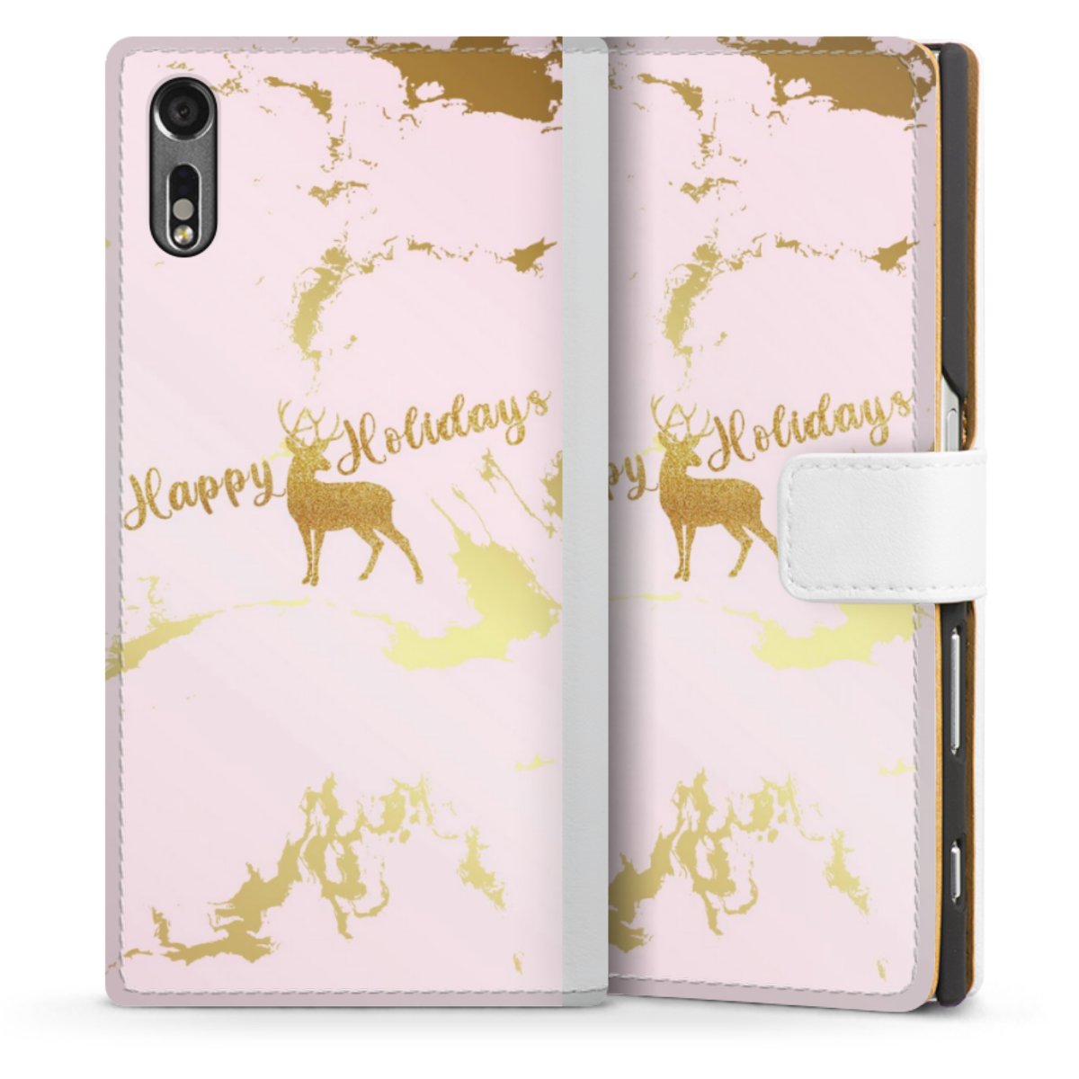For our Sideflip Case we are using our advanced direct printing technology. The back and frontside are fully printabale, the inside of the phone bag is left unprinted. You can order the phone case without print, printed completely or also with a partial print.