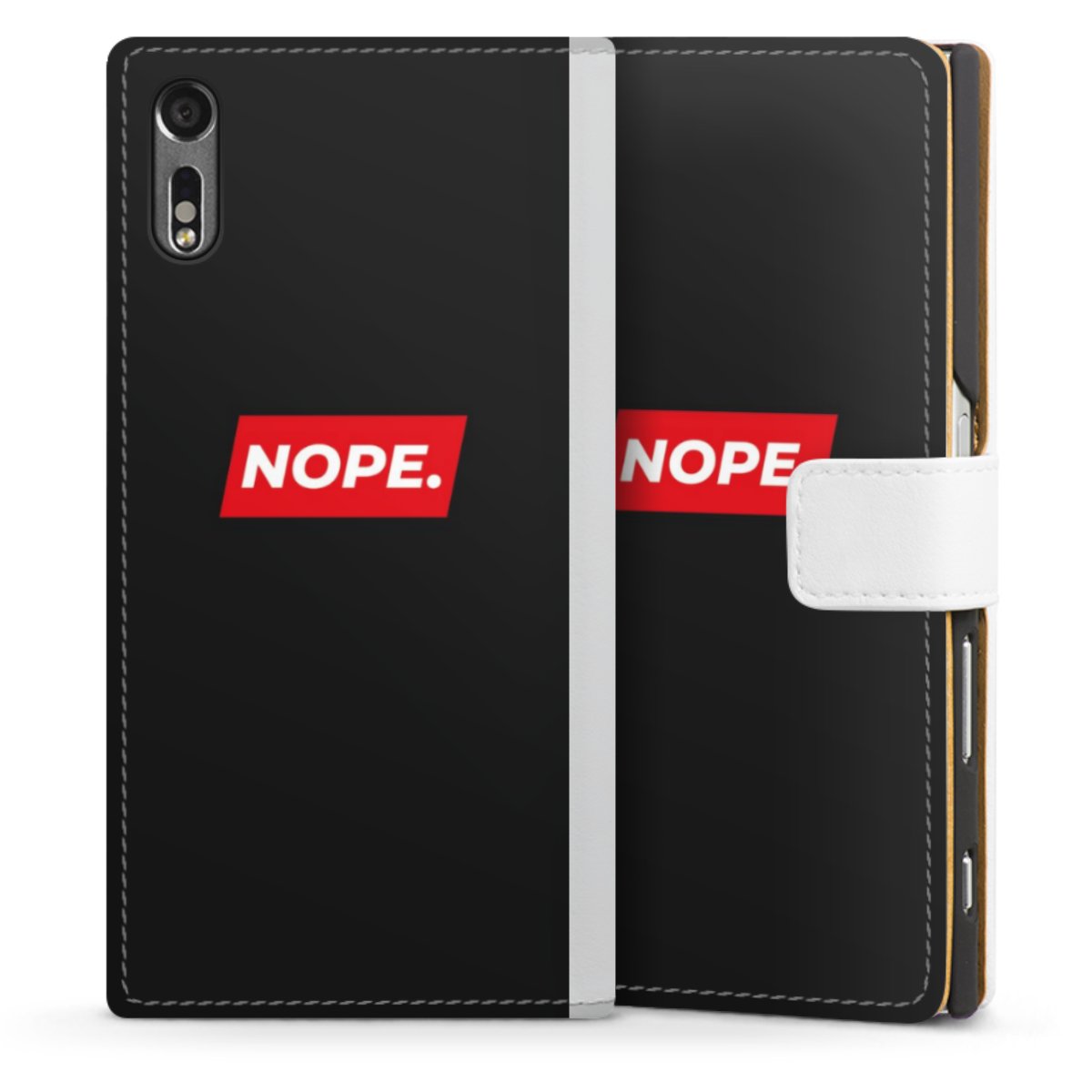 For our Sideflip Case we are using our advanced direct printing technology. The back and frontside are fully printabale, the inside of the phone bag is left unprinted. You can order the phone case without print, printed completely or also with a partial print.