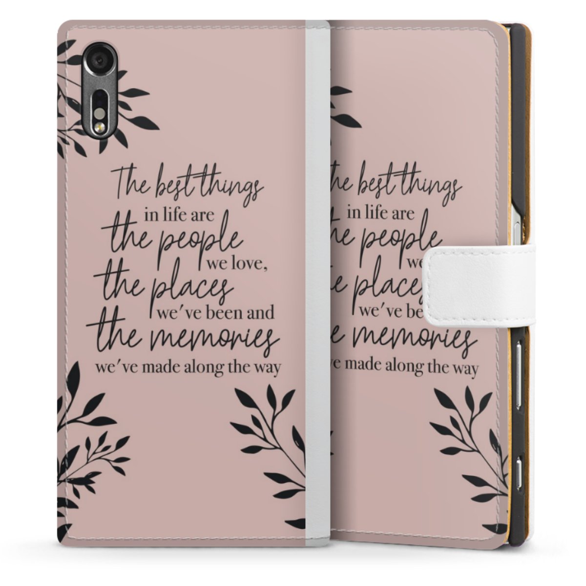 For our Sideflip Case we are using our advanced direct printing technology. The back and frontside are fully printabale, the inside of the phone bag is left unprinted. You can order the phone case without print, printed completely or also with a partial print.