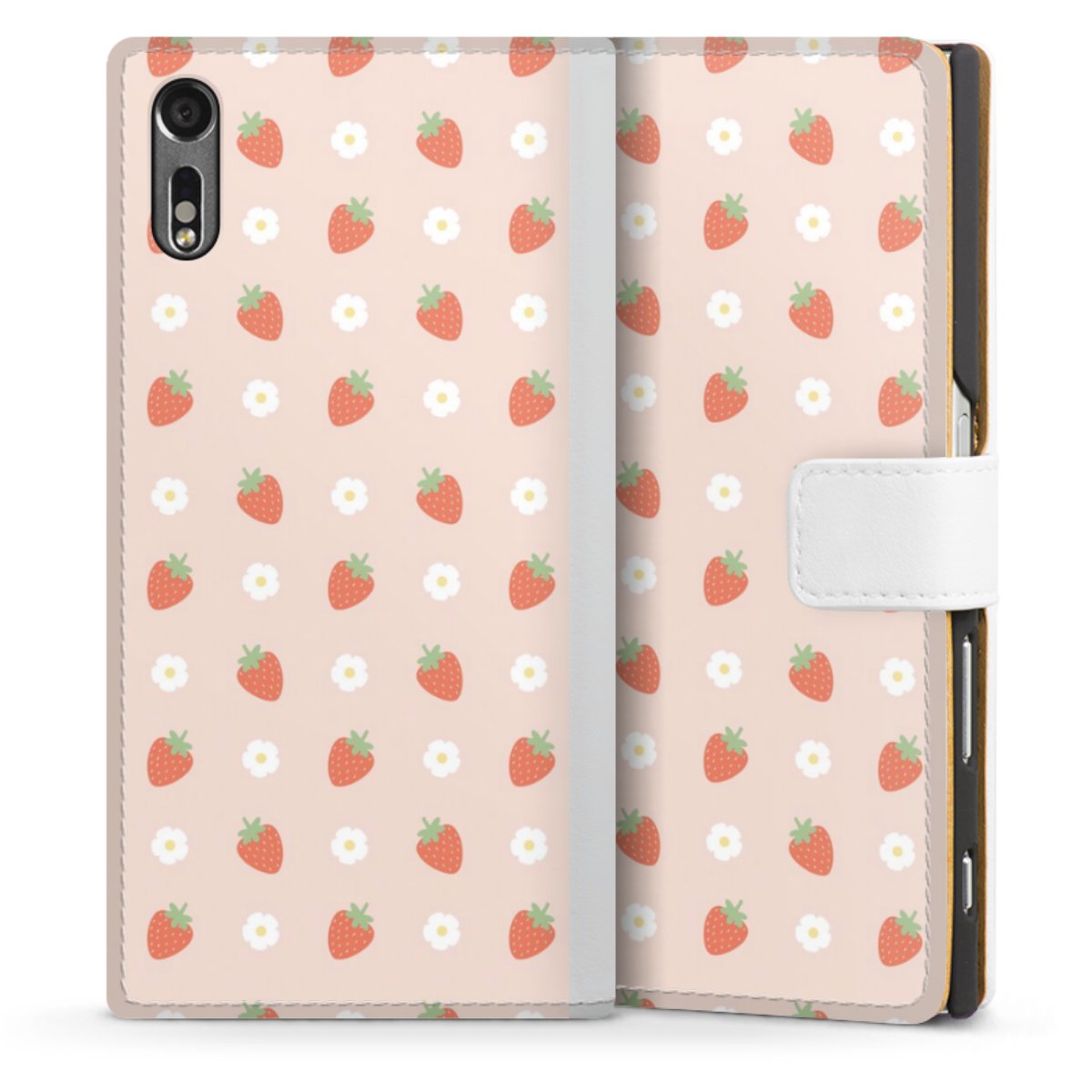 For our Sideflip Case we are using our advanced direct printing technology. The back and frontside are fully printabale, the inside of the phone bag is left unprinted. You can order the phone case without print, printed completely or also with a partial print.