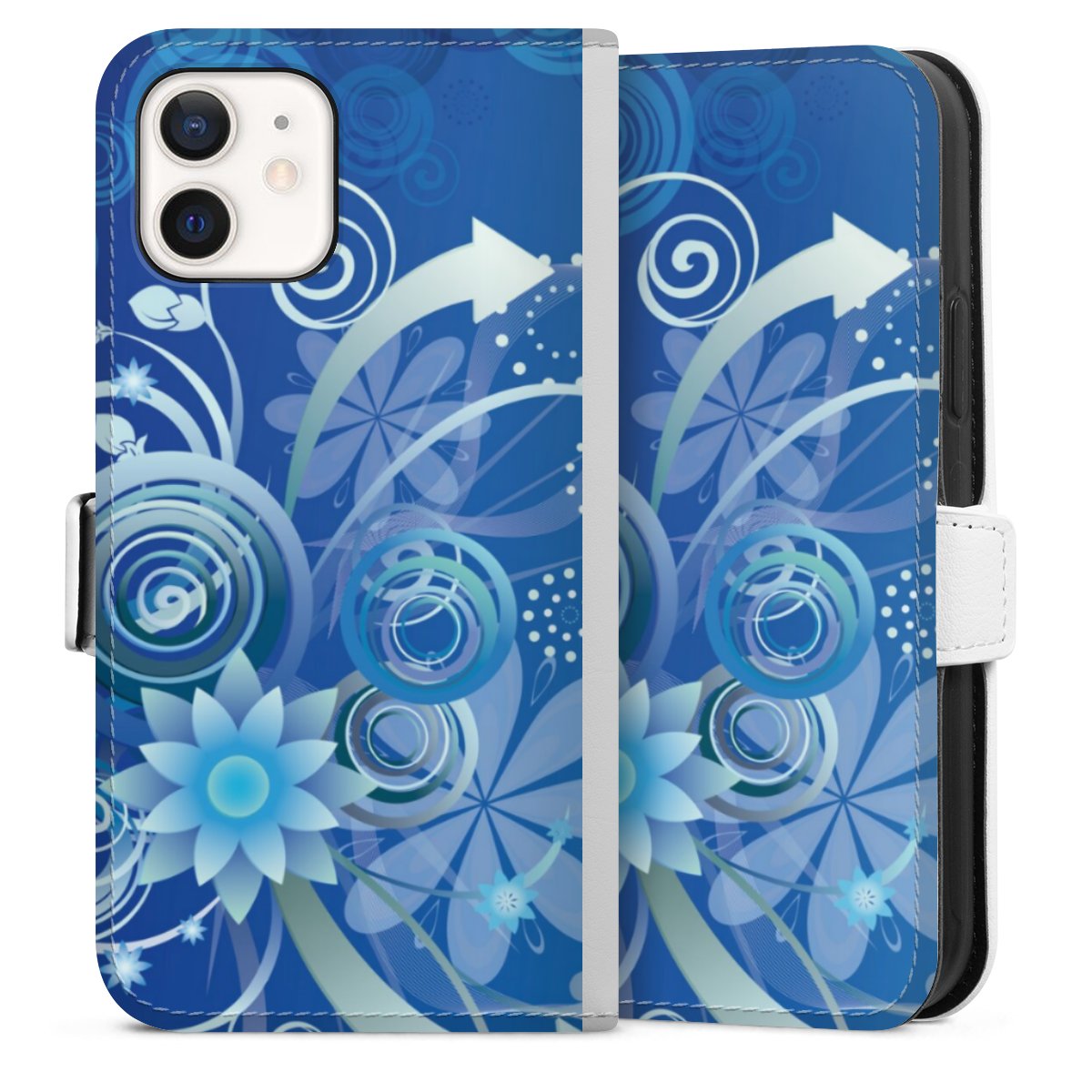 Flowers and Swirls Blue