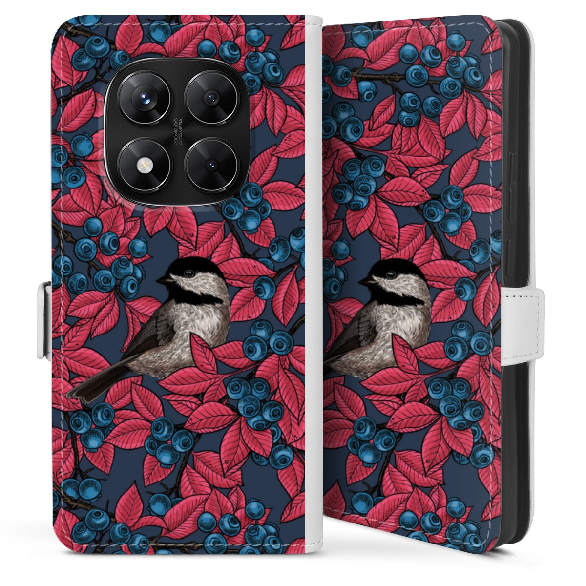 Blueberries And Birds On Navy